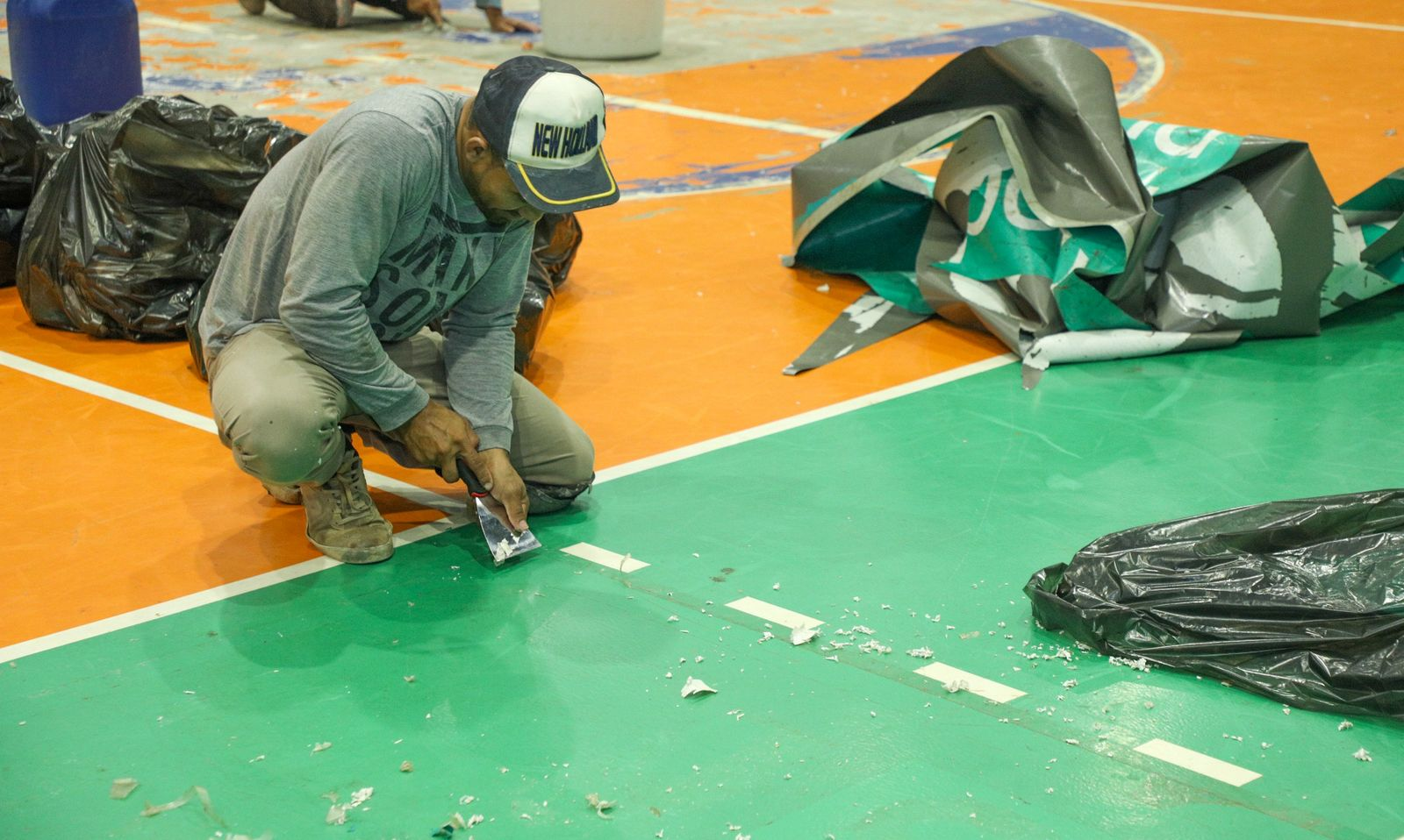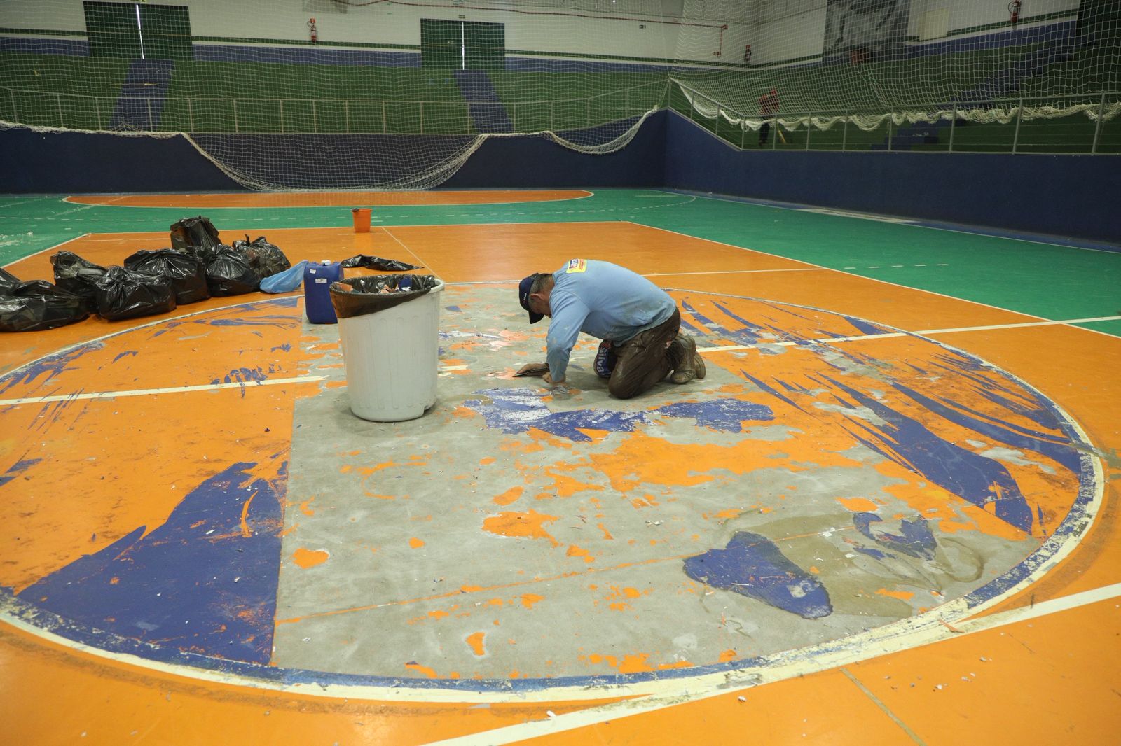 A revitalização do Ginásio Sérgio Mauro Festugatto, no Complexo Esportivo Ciro Nardi, começou nesta terça-feira (16). O trabalho inclui pintura da quadra, das arquibancadas e da orla interna do ginásio.