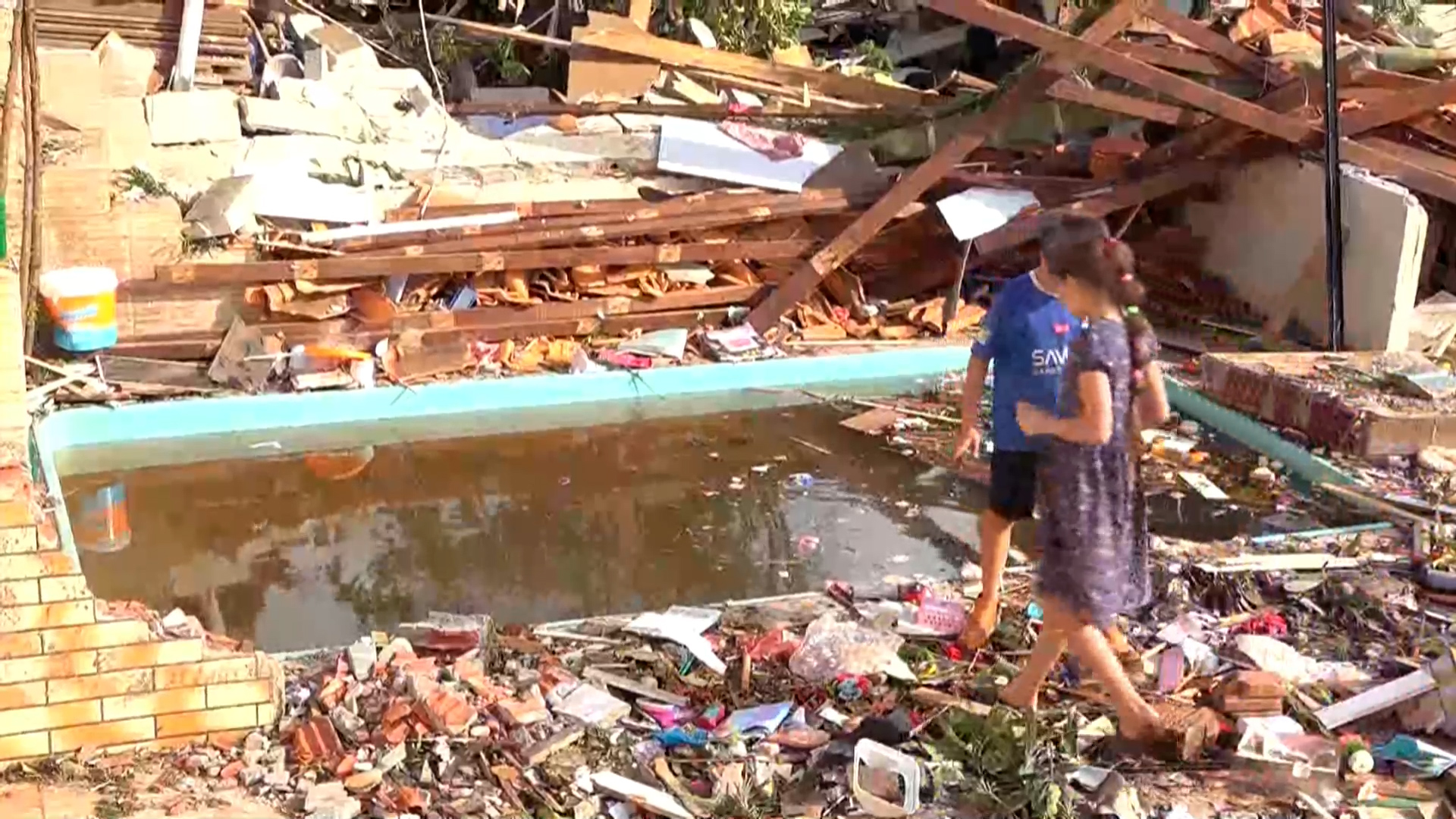 Já para o morador Marcos, a cena foi ainda mais assustadora. Ele conta ter visto a casa ser destruída e dois de seus três filhos levados pelo vento. Duas meninas, uma de apenas 1 ano e meio e outra de 7 anos, caíram em uma piscina. Marcos conseguiu resgatar as filhas a tempo e com vida.