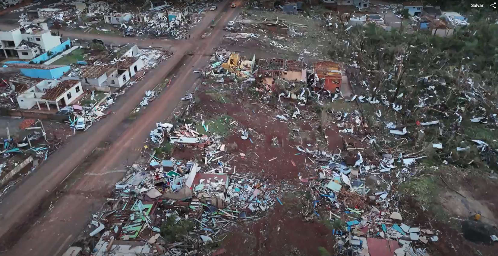 A passagem de um tornado de alta intensidade na noite de sexta-feira (7) deixou um rastro de destruição e cenas de desespero em Rio Bonito do Iguaçu, no Paraná. Com ventos estimados em mais de 250 km/h, classificado preliminarmente como EF3 pelo Simepar, o fenômeno causou seis vítimas, centenas de feridos e destruiu cerca de 80% das edificações do município.