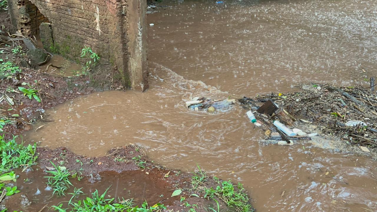 Nível do córrego ficou na altura do asfalto
