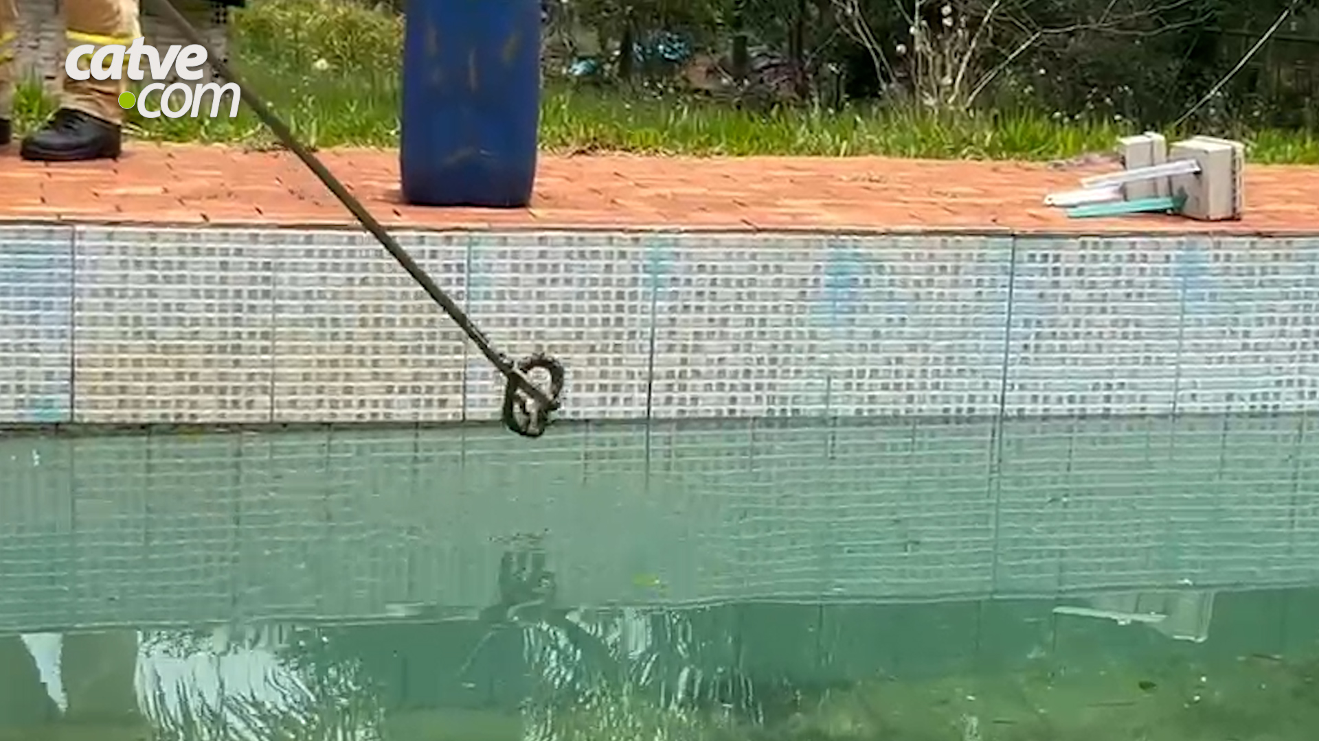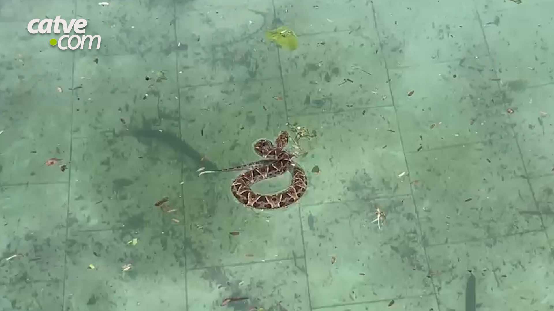 Cobra da espécie Bothrops jararaca foi capturada na manhã desta sexta-feira (14) em uma área rural nas proximidades da Rua Rio da Paz, na região do Paraíso, em Cascavel. O animal estava dentro da piscina de uma chácara. Os moradores cortavam a grama quando viram a cobra, o que os assustou.