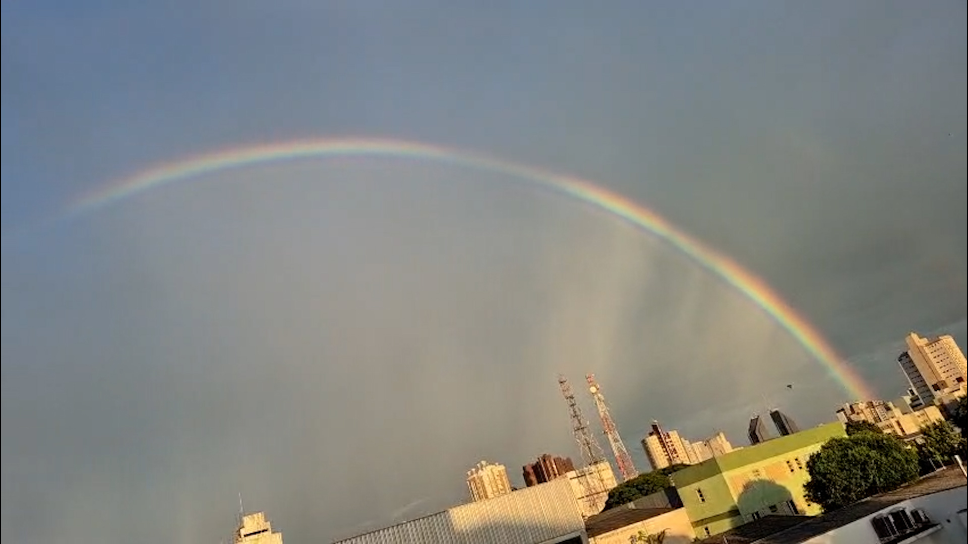 O céu de Cascavel ganhou um espetáculo natural nesta sexta-feira (14): um arco-íris completo e vibrante que chamou a atenção de quem estava nas ruas e registrou o momento. O fenômeno apareceu devido às condições climáticas típicas desta época, com variação de nuvens, umidade elevada e passagem rápida de chuva.