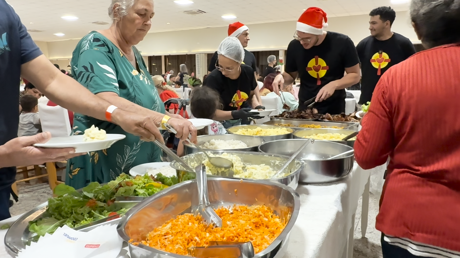 A Arquidiocese de Cascavel sediou na noite deste sábado (15) a 5ª Ceia Solidária, um evento de acolhimento que reuniu cerca de mil pessoas em situação de vulnerabilidade social no salão paroquial da Catedral. A celebração fez parte da programação da 9ª Jornada Mundial dos Pobres.