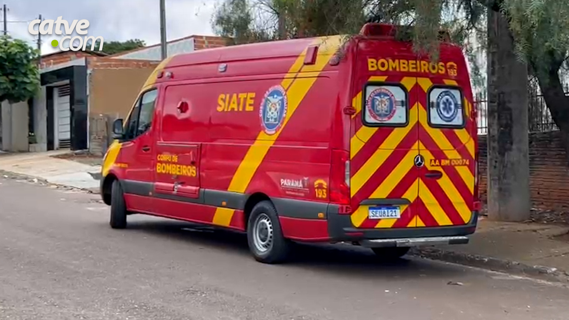 Homem de 39 anos ficou ferido após cair de telhado na rua Pitágoras, no bairro Interlagos, em Cascavel, na tarde de domingo (16).