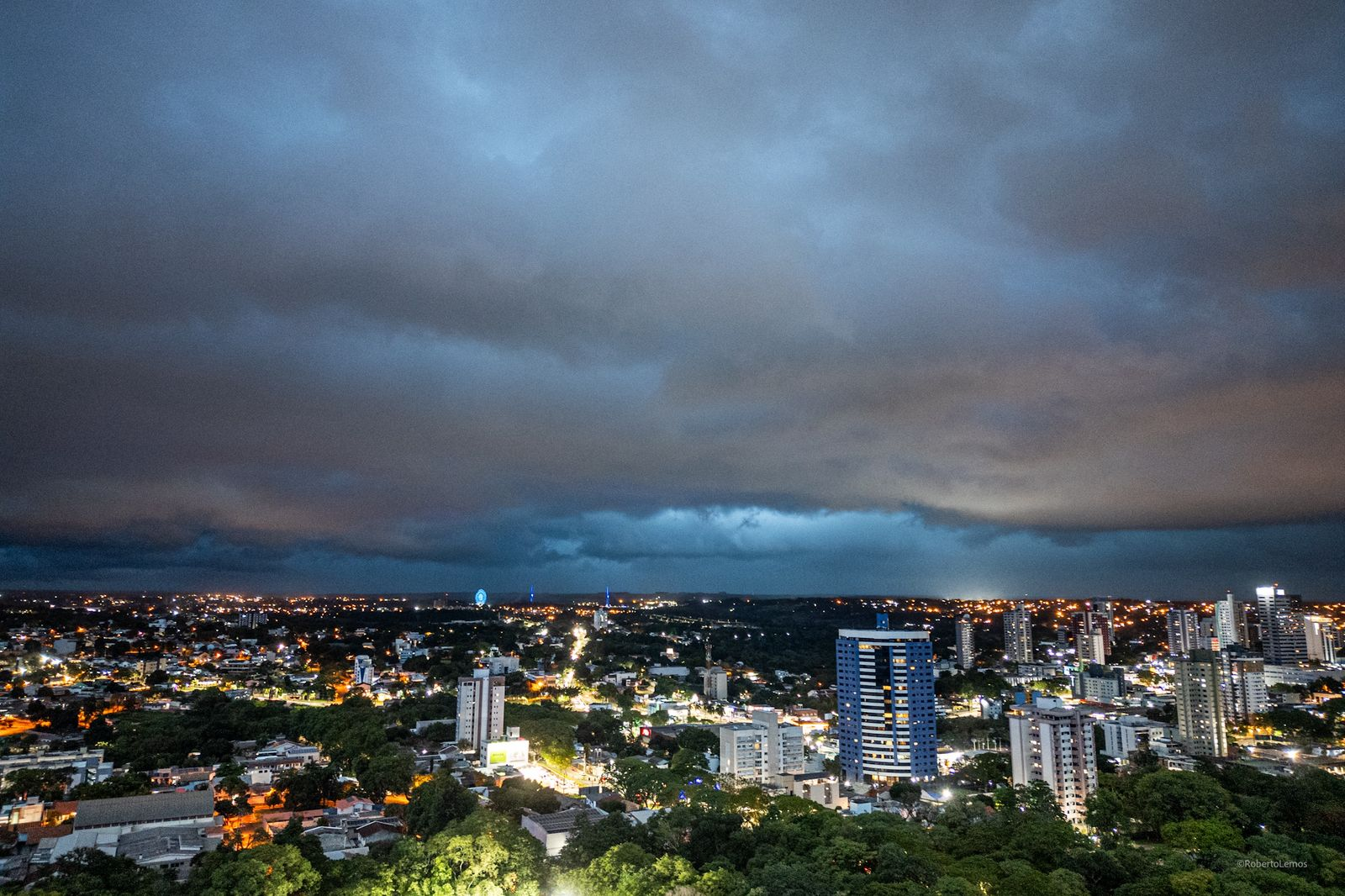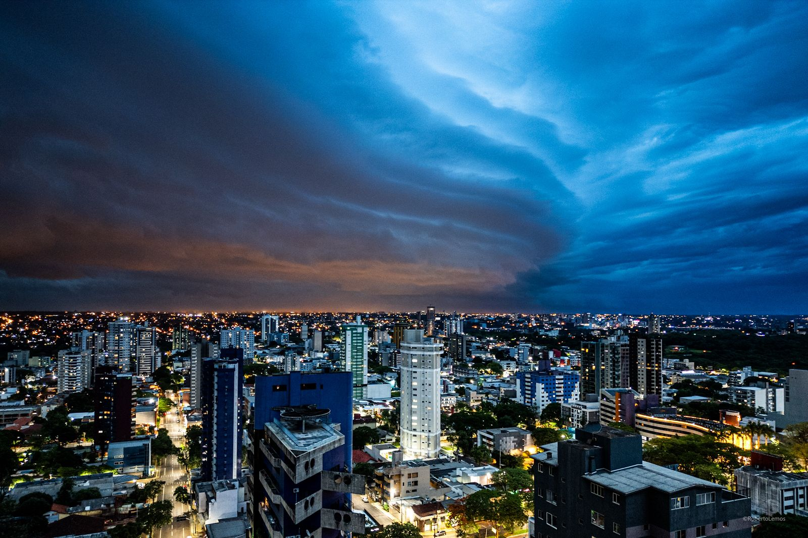 Vídeo mostra a chegada da chuva em Foz do Iguaçu, no Oeste do paraná, na noite de domingo (16). Nas imagens é possível ver as nuvens carregadas, acompanhadas de trovoadas e chuva.