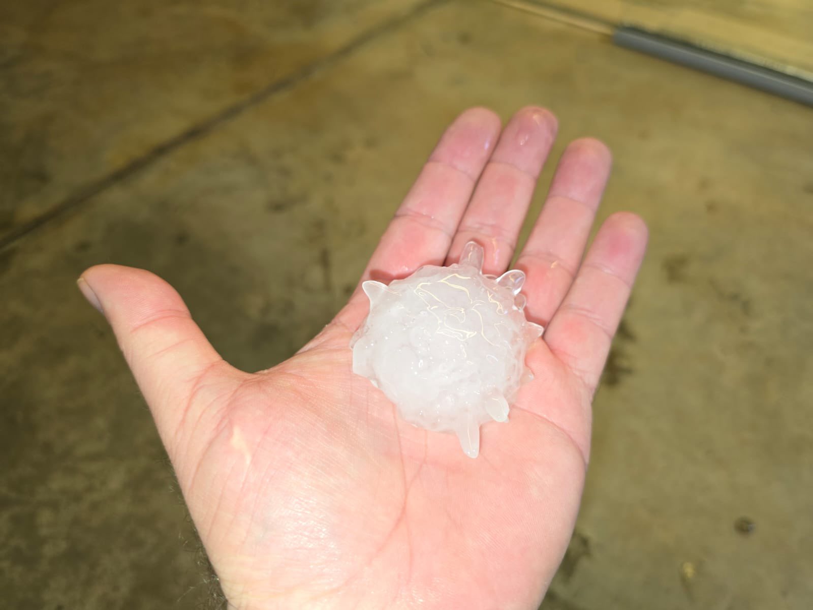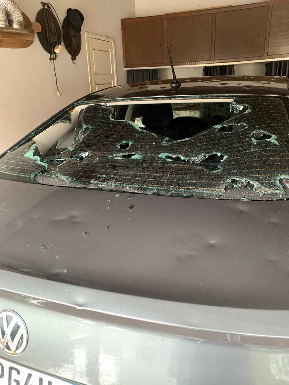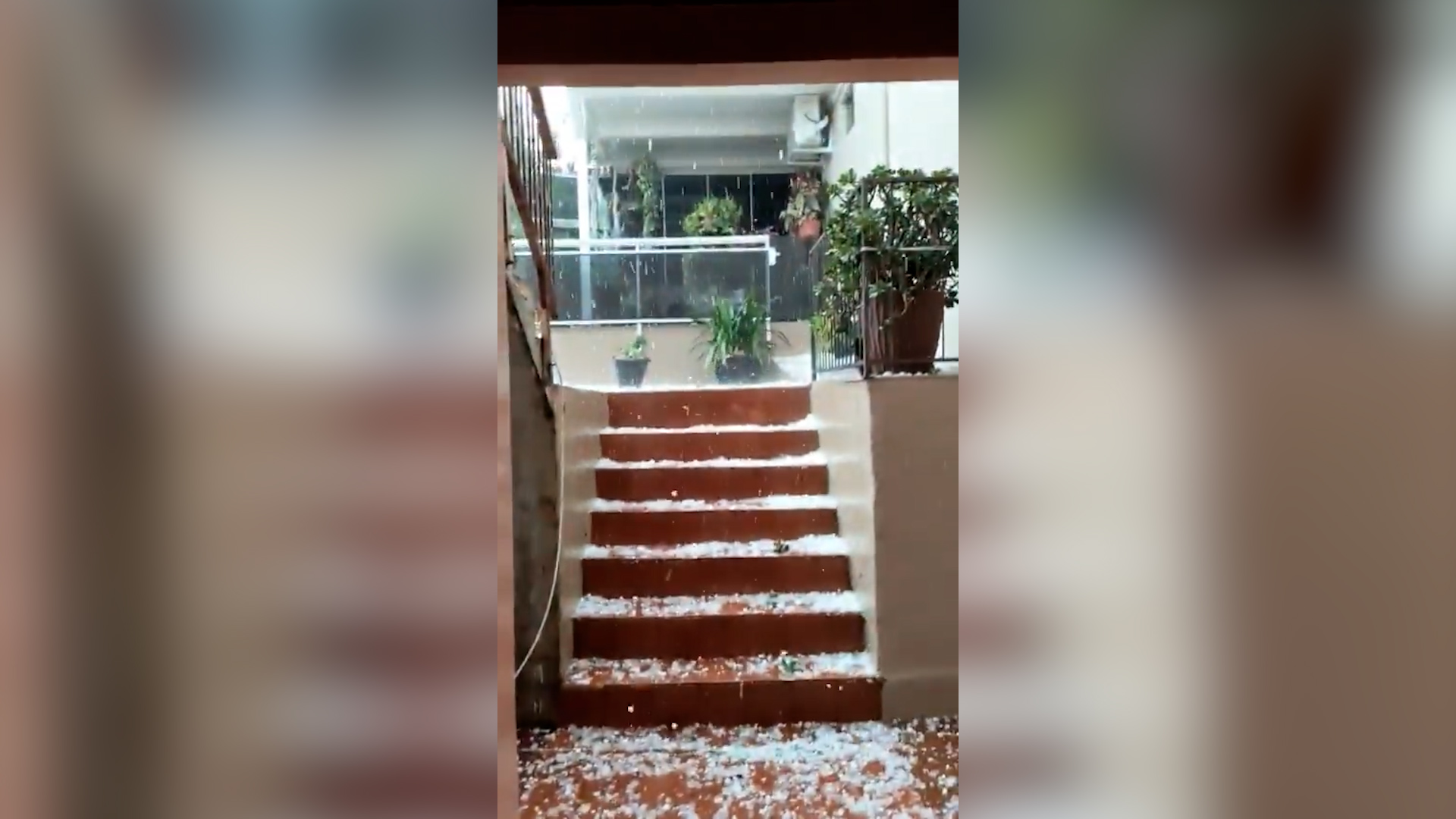 Carros ficaram danificados e muitos imóveis tiveram telhados perfurados. Moradores registraram pedras de granizo de grande tamanho.