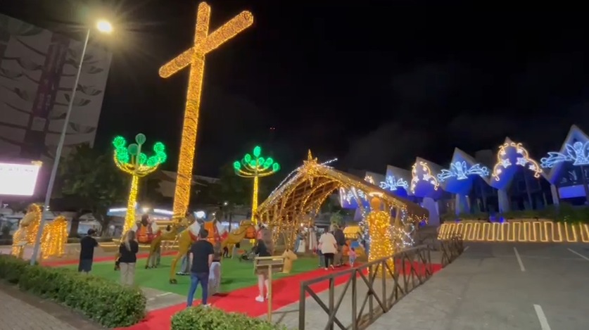 O calçadão, na frente da Catedral, é o principal ponto de visitas, por conta do presépio e também da árvore de natal.