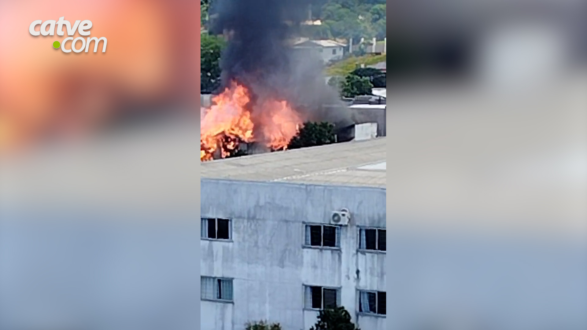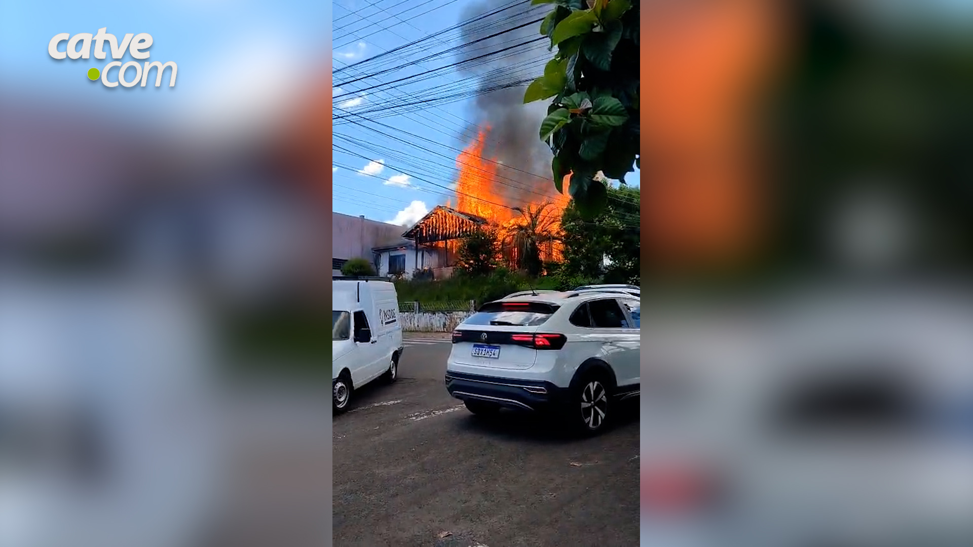 Casa de madeira que estava desocupada foi completamente consumida pelo fogo por volta das 13h20 desta quarta-feira (26), no cruzamento da Rua Antonina com a Goiás, no Bairro Nossa Senhora Aparecida, em Francisco Beltrão, no sudoeste paranaense.