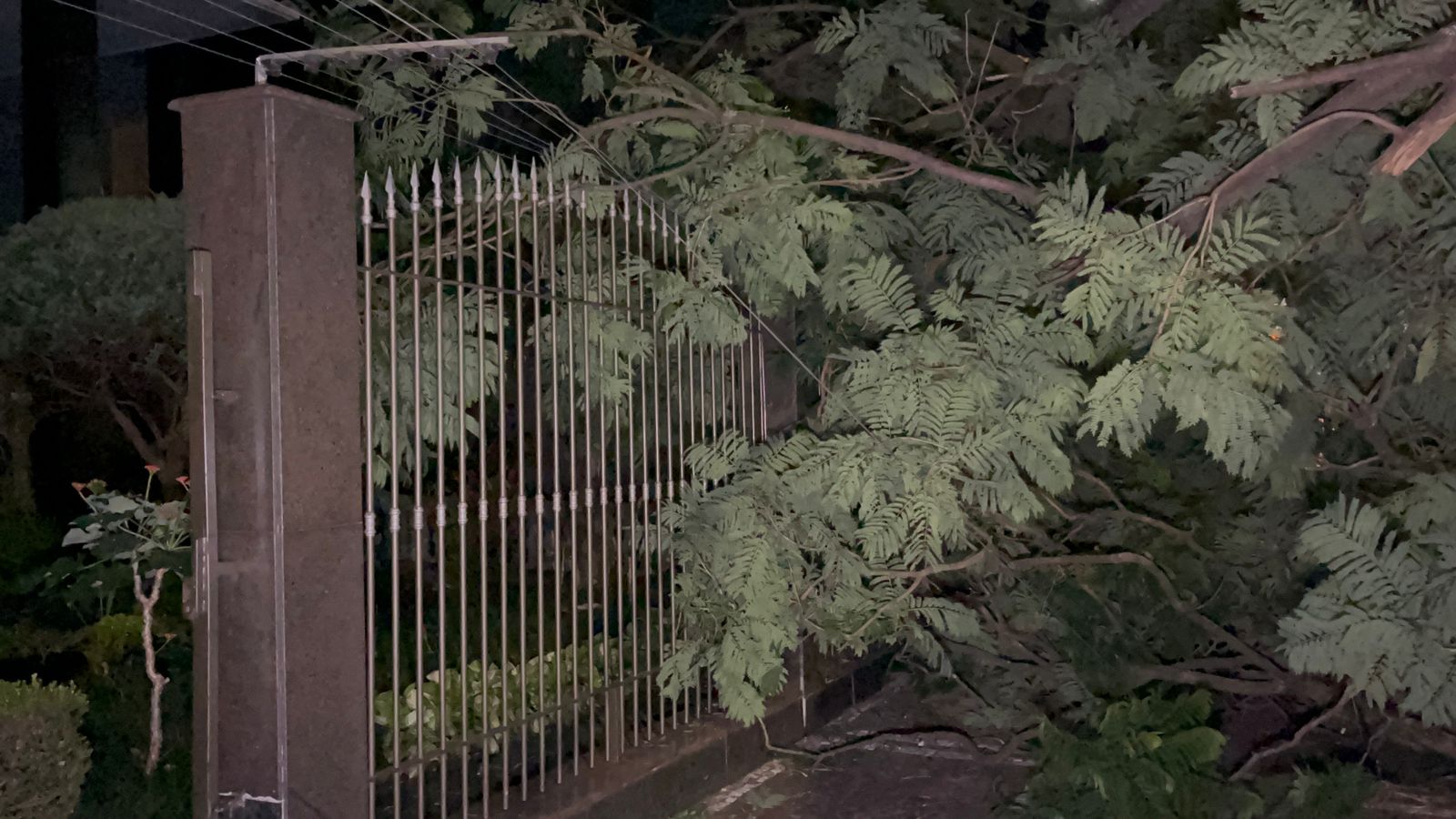 Uma grande árvore caiu no Centro de Cascavel, durante a noite desta quarta-feira (3).
