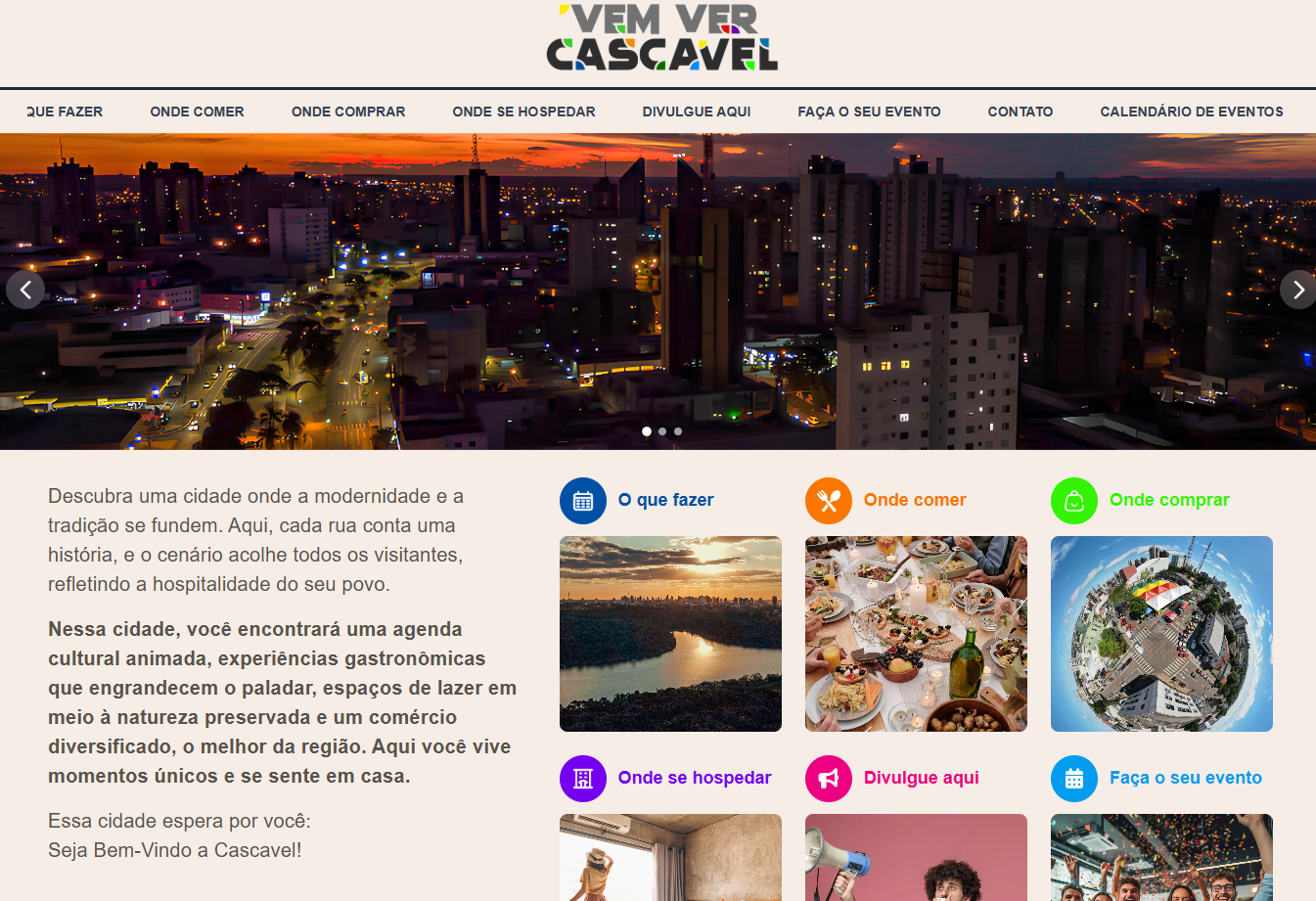Tudo foi preparado para que o município de Cascavel contasse com uma ferramenta de fácil acesso a todos os pontos. Um portal que reúne informações sobre eventos, serviços e experiências para quem quer conhecer o turismo que existe por aqui. Agora é só acessar a. Plataforma "Vem Ver Cascavel".