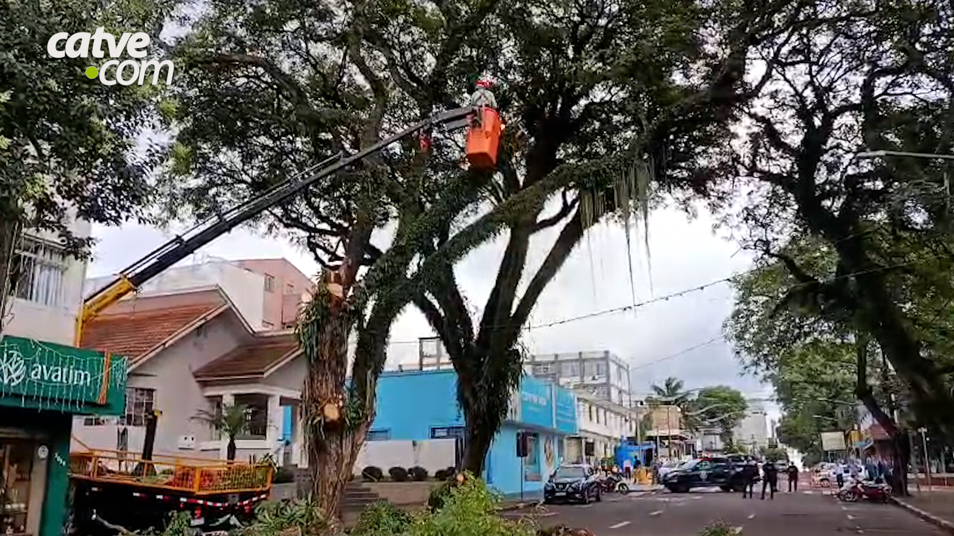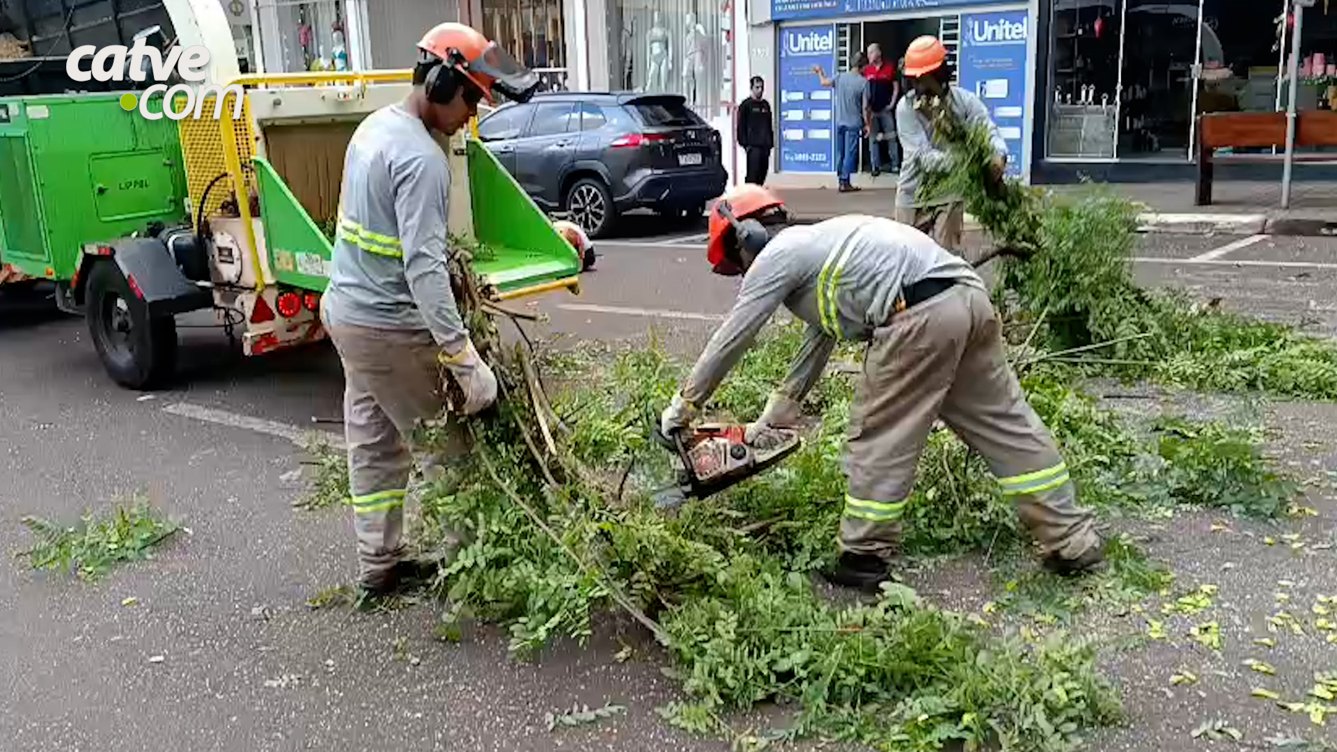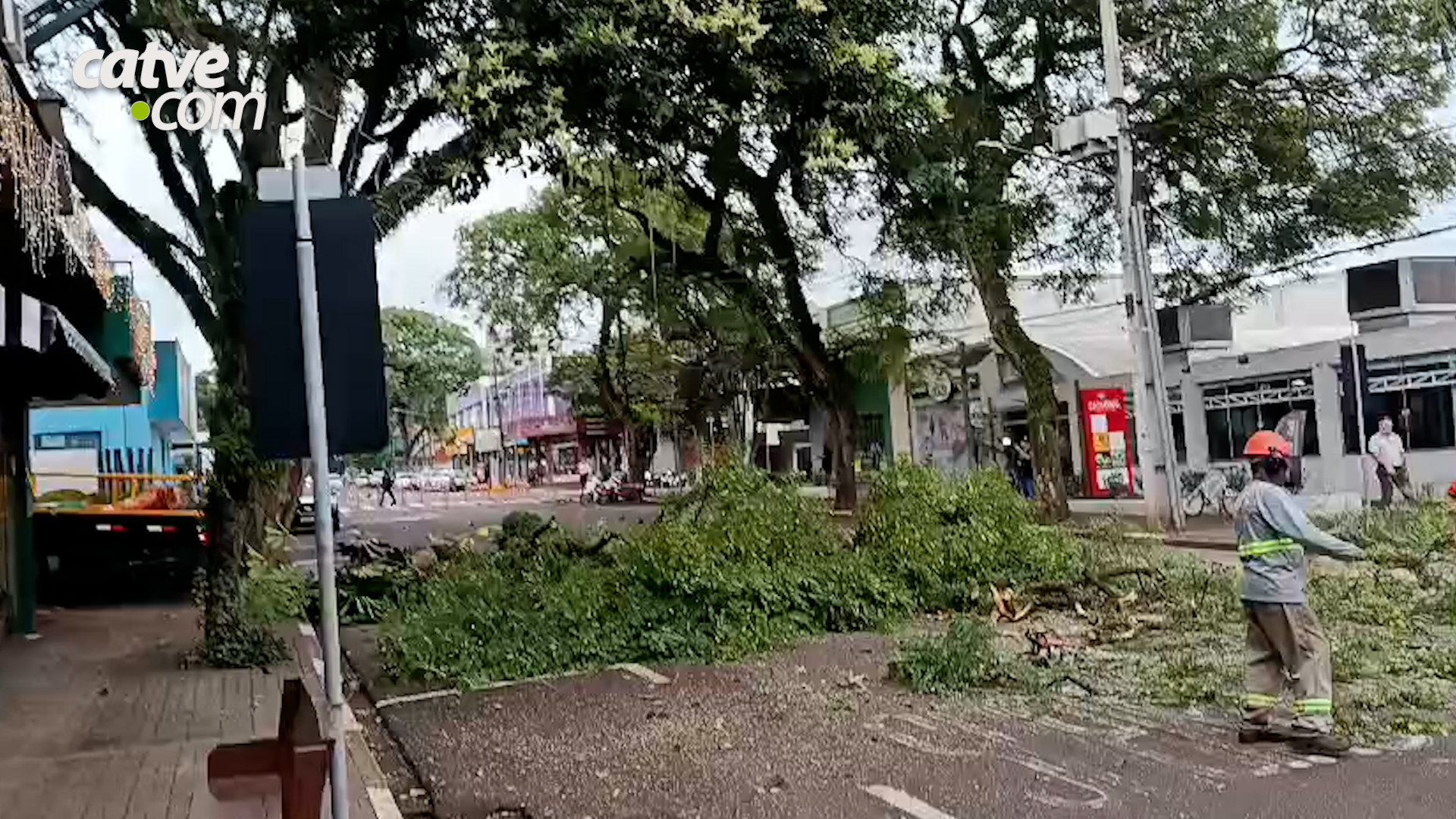 A poda e a remoção de duas árvores na Rua Almirante Barroso, entre a Rua XV de Novembro e a Avenida Largo São Vicente de Paula, começou às 7h30 desta quarta-feira e afeta o trânsito na região central de Toledo.