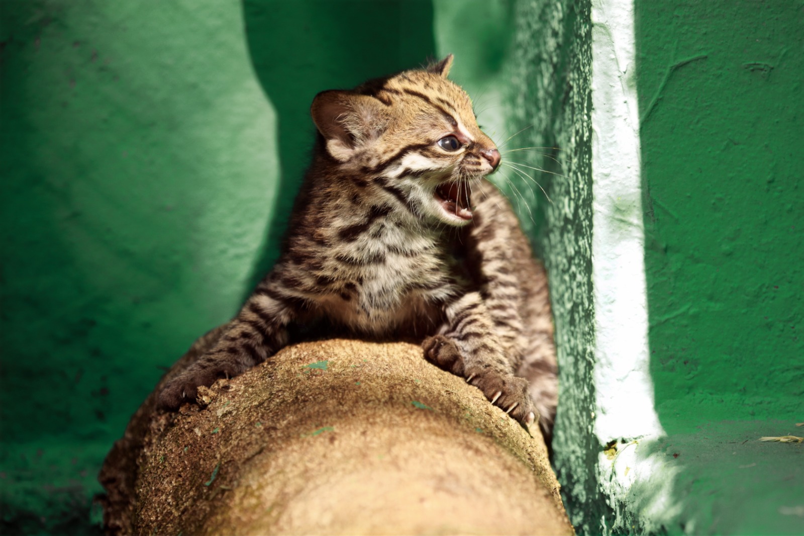 A espécie Leopardus guttulus está classificada como vulnerável à extinção. A perda de habitat, atropelamentos, caça e doenças afetam a sobrevivência desses felinos. A reprodução ocorre de forma lenta, geralmente com apenas um filhote por ninhada, o que torna o nascimento de três indivíduos um fato relevante.