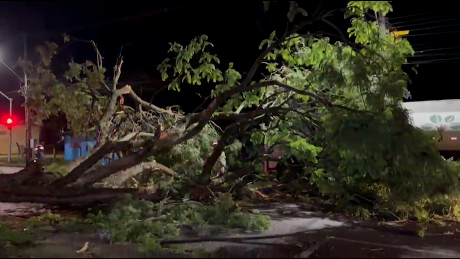 Uma árvore de grande porte caiu no início da noite desta sexta-feira (12), no bairro Claudete em Cascavel.