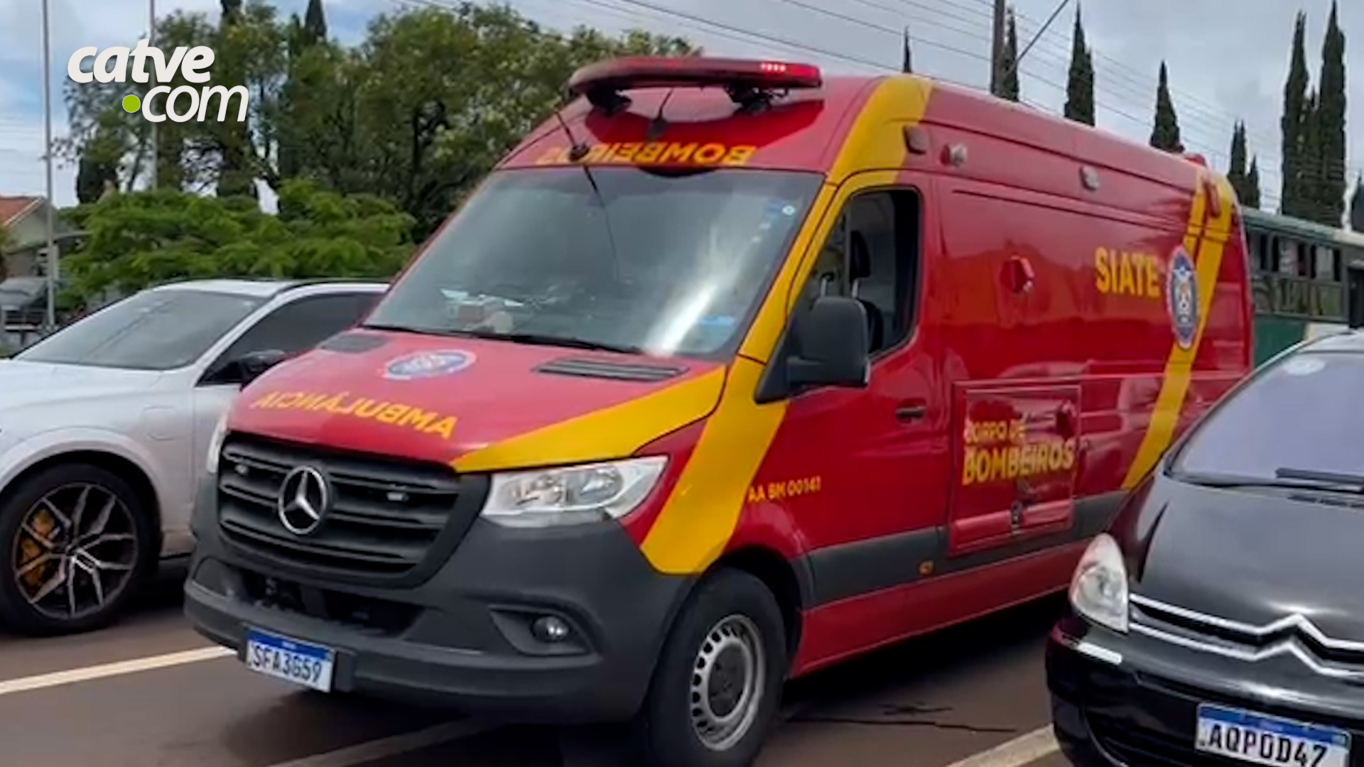 A vítima foi atendida por socorristas do Siate com suspeita de fratura na mão esquerda e encaminhada para atendimento hospitalar. Um caminhão Auto Bomba Tanque Resgate (ABTR) também foi mobilizado.