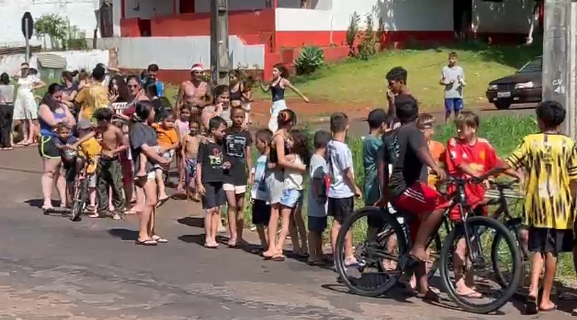 Cestinhas de doces foram entregues a diversas crianças pelas ruas de Cascavel nesta quarta-feira (24), véspera de Natal, levando alegria e espírito solidário a diversas famílias.