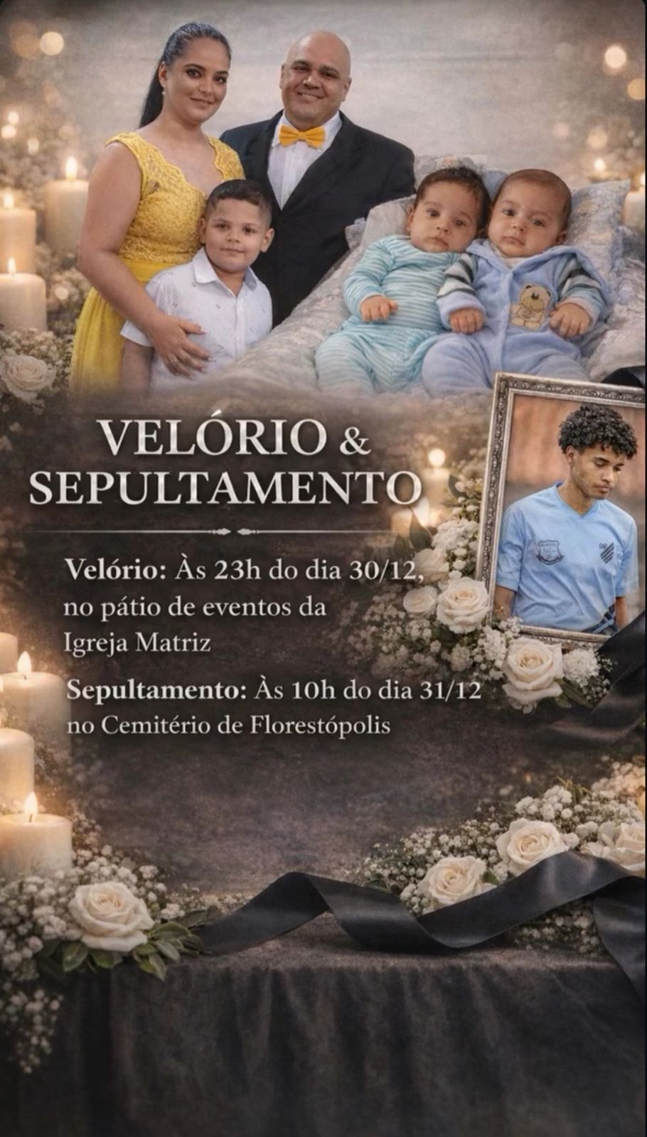 O velório começou às 23h de terça-feira (30) e acontece no pátio de eventos da Igreja Matriz do município. Em razão da tragédia, o prefeito Onicio Souza decretou luto oficial de três dias e cancelou a queima de fogos da virada do ano, que estava prevista para esta quarta-feira.