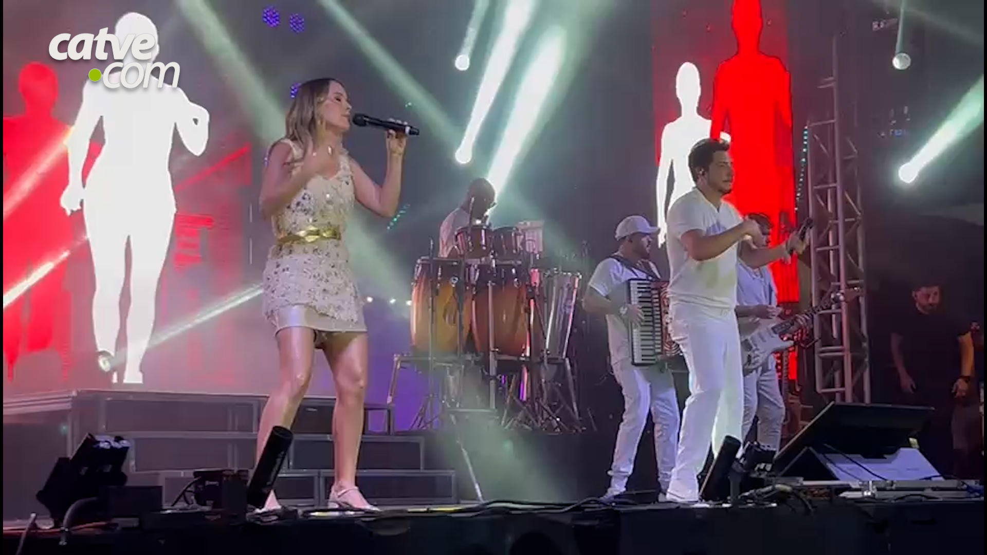 Às 23h30, Thaeme & Thiago assumiram o palco e conduziram a contagem regressiva para a chegada de 2026. Com repertório de sucessos que atravessa gerações, a dupla animou o público e transformou a frente da Prefeitura em um grande espaço de festa e confraternização.
