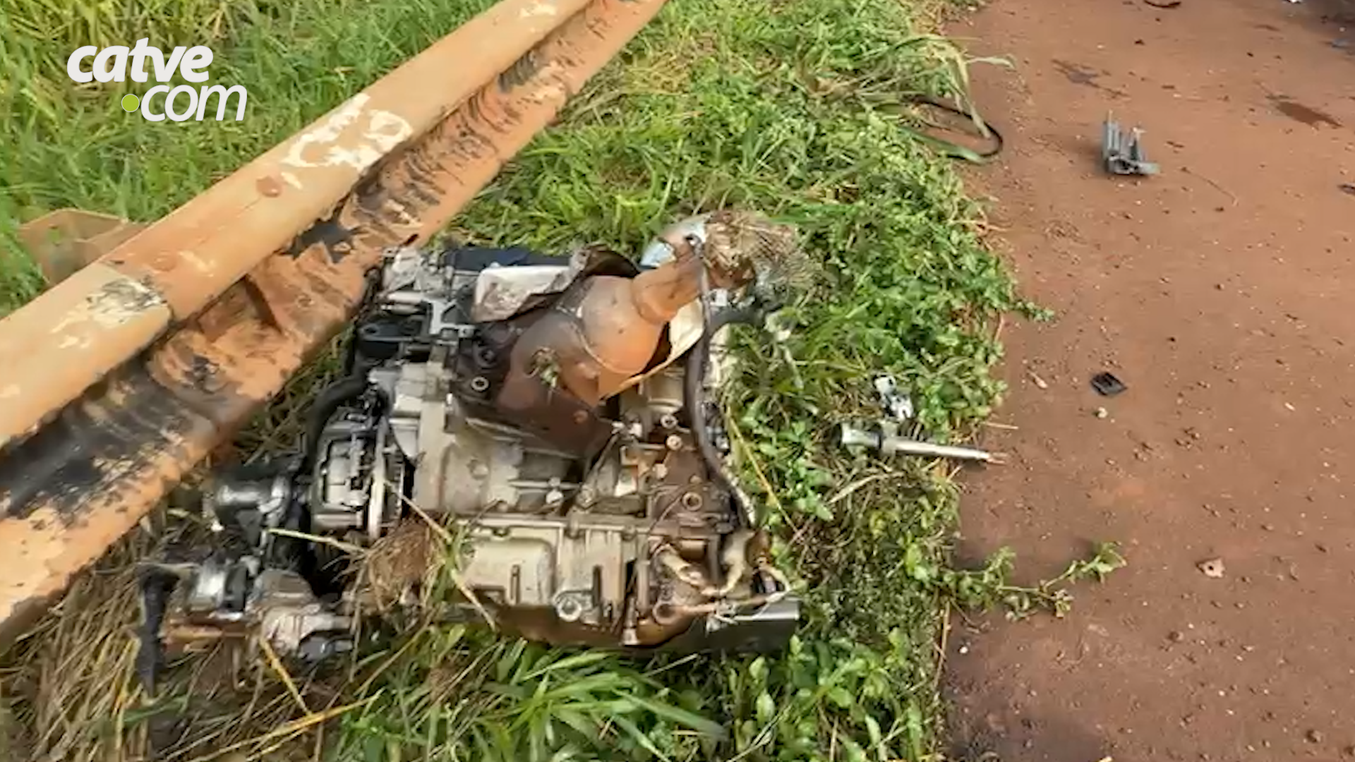 Segundo a Polícia Rodoviária Federal (PRF), o veículo atingiu o caminhão Scania R450 que vinha na direção contrária. Com a força do impacto, o motor do carro parou no asfalto às margens da pista.