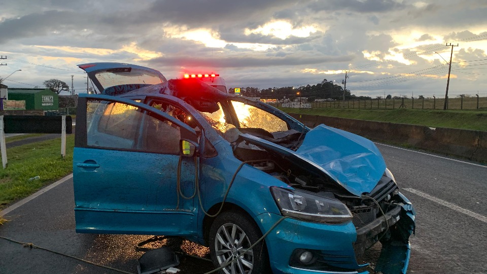 Conforme informado à reportagem, o carro e o caminhão, que transportava grãos, seguiam sentido a Foz do Iguaçu, quando houve a batida lateral. Na sequência, o carro atingiu e subiu na mureta que divide as pistas.