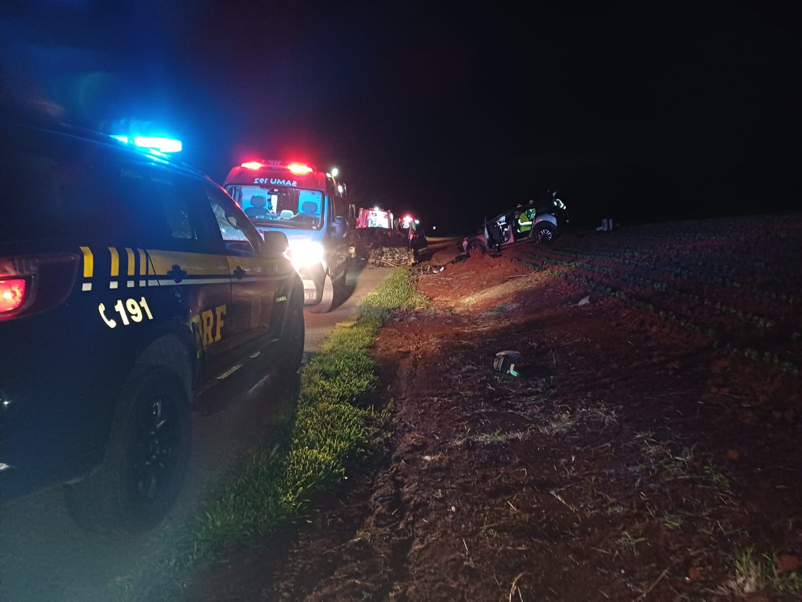 Os veículos envolvidos foram um Volkswagen Santana, com placas de Palmeira, e um Renault Kardian, com placas de São Paulo. No Santana estavam um homem de 31 anos e uma mulher de 37. O motorista foi levado para a UPA Santana, em Ponta Grossa, enquanto a passageira morreu no local. O corpo foi encaminhado a Polícia Científica de Ponta Grossa.