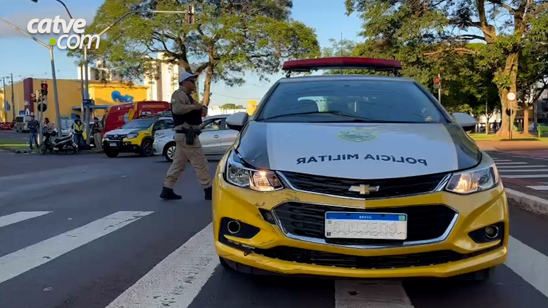 As informações são de que o Cruze da PM seguia pela Avenida Brasil e ao chegar no cruzamento com a rua Treze de Maio, se envolveu na batida com a motociclista.