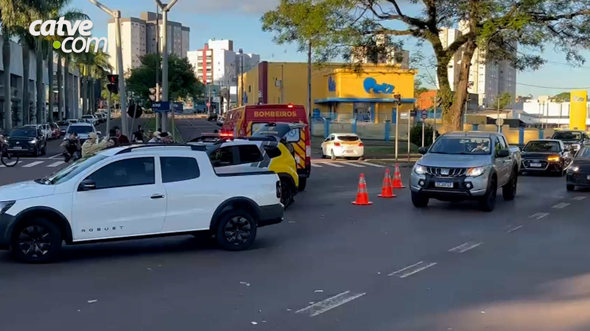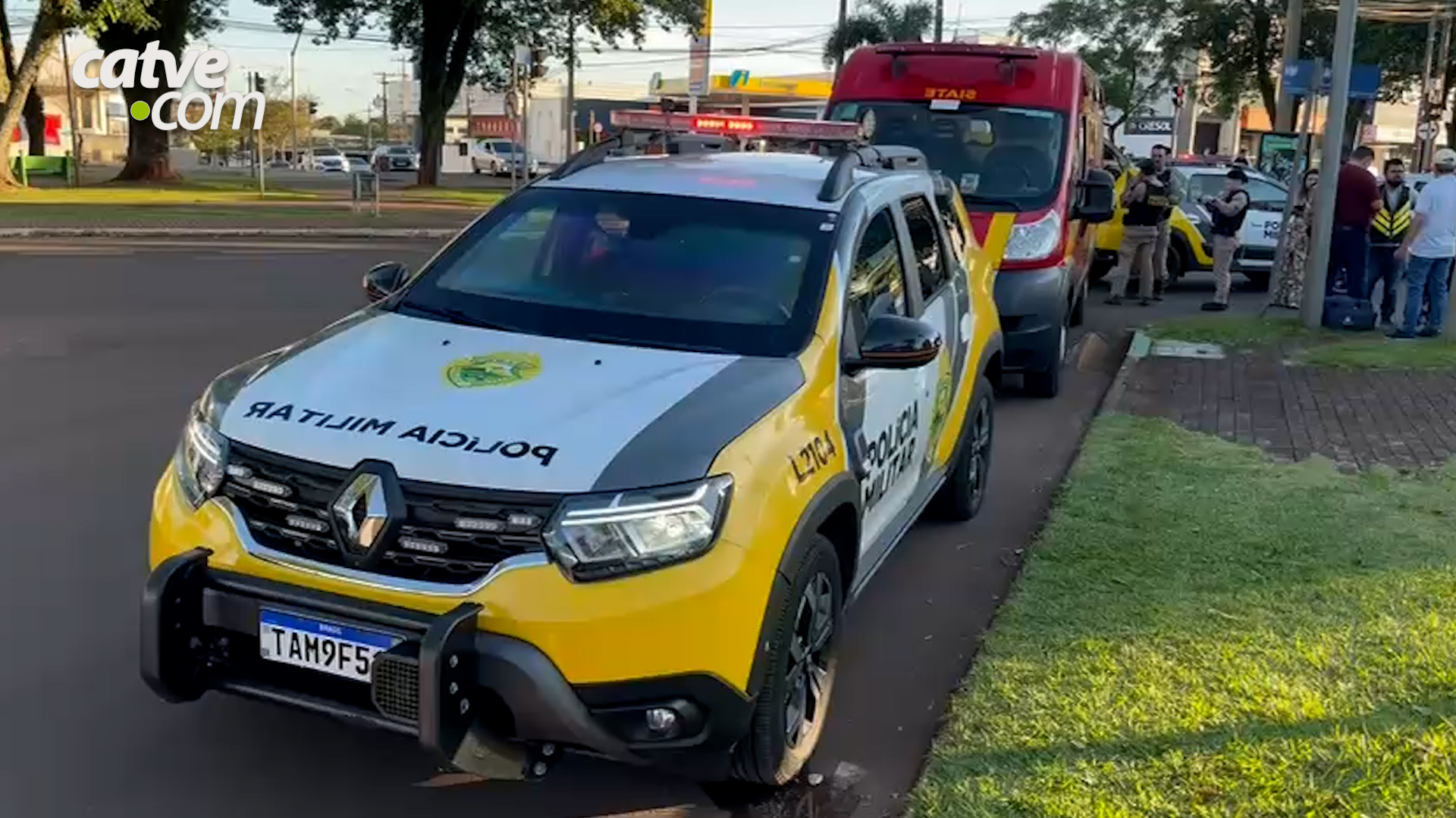 Câmera flagra momento antes de batida entre moto e viatura da PM no Centro de Cascavel