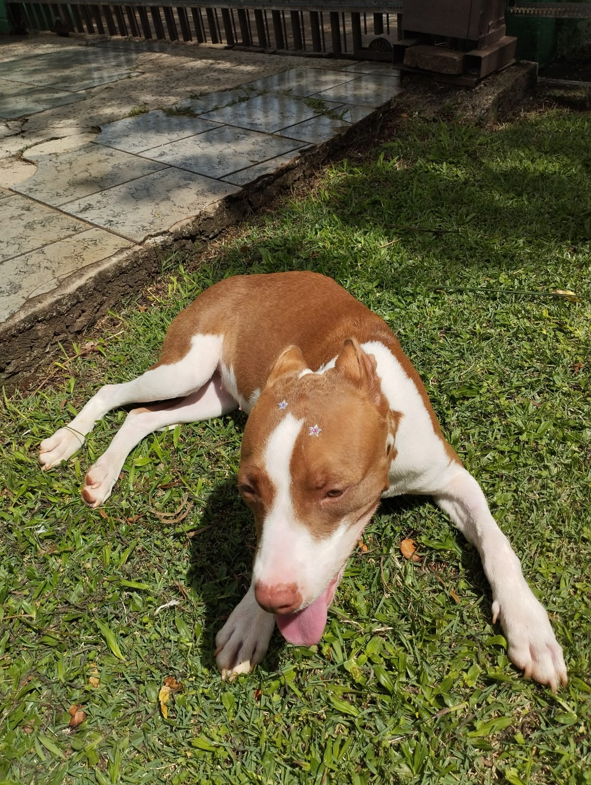 Uma cadela da raça pitbull foi localizada no bairro Tropical, em Cascavel, próximo a base da Polícia Militar.