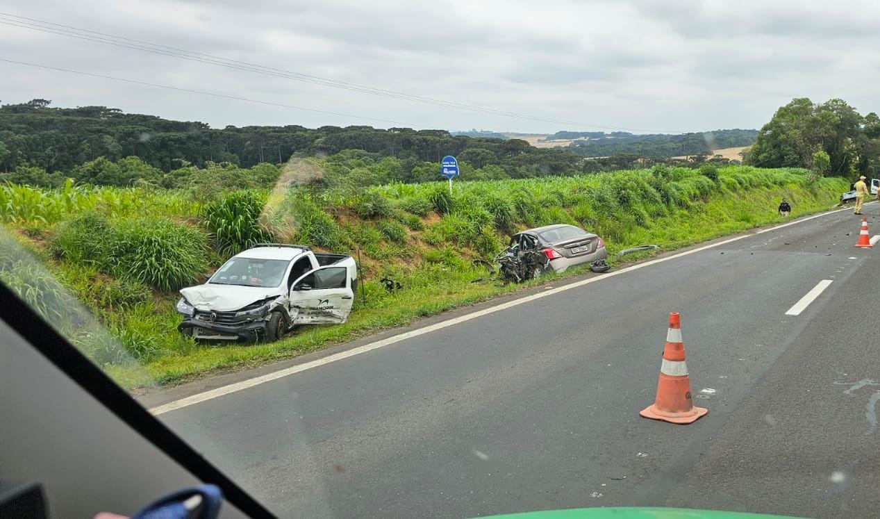 Uma pessoa morreu e três ficaram feridas após acidente no km 197 da BR-277, em Palmeira, no Centro Oriental paranaense, na tarde desta sexta-feira (14).