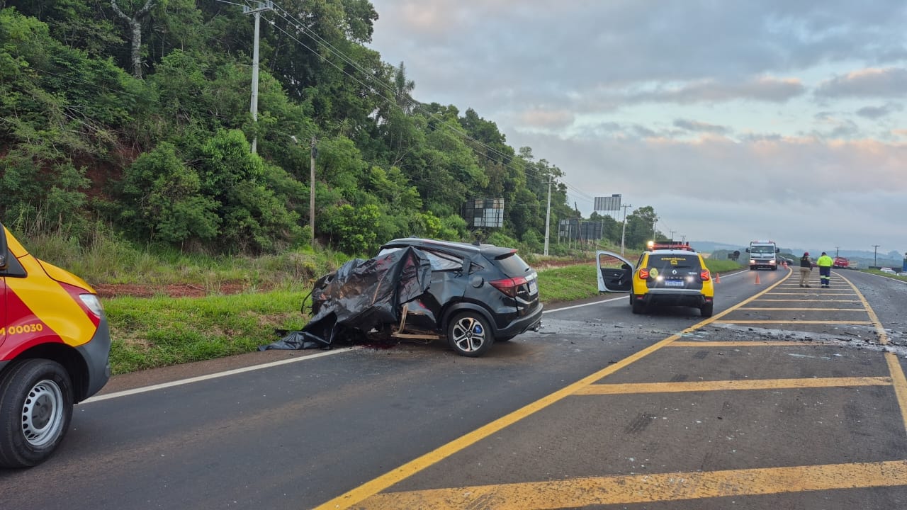 O acidente aconteceu por volta de 3h40. O motorista do Honda HR-V, de Enéas Marques, não resistiu aos ferimentos. A passageira que estava com ele foi socorrida com ferimentos.