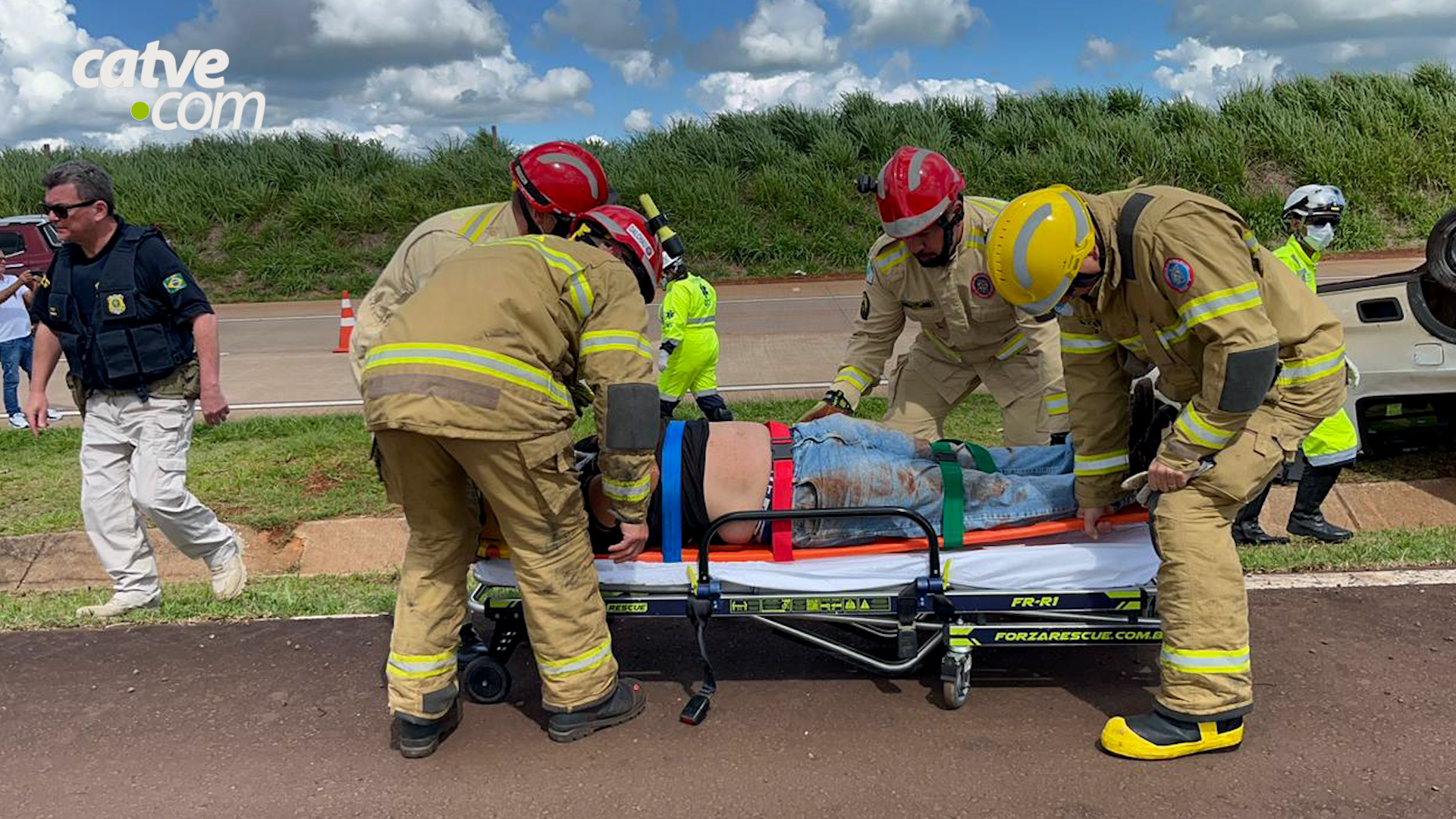 Homem de 26 anos ficou ferido após Volkswagen Saveiro capotar no km 197 da BR-163, em Cascavel, na tarde desta terça-feira (18).