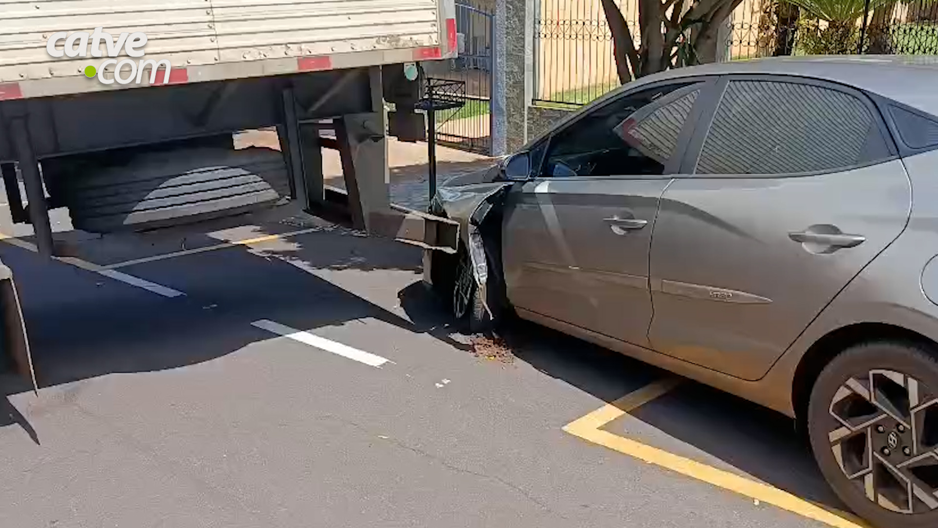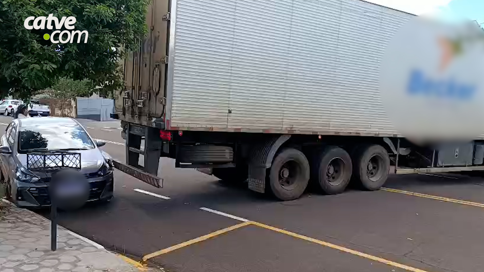 Carreta câmara fria atingiu dois carros, na tarde desta terça-feira (18), em Toledo. O acidente ocorreu na rua Nossa Senhora do Rocio, trecho entre as ruas São João e Almirante Tamandaré.