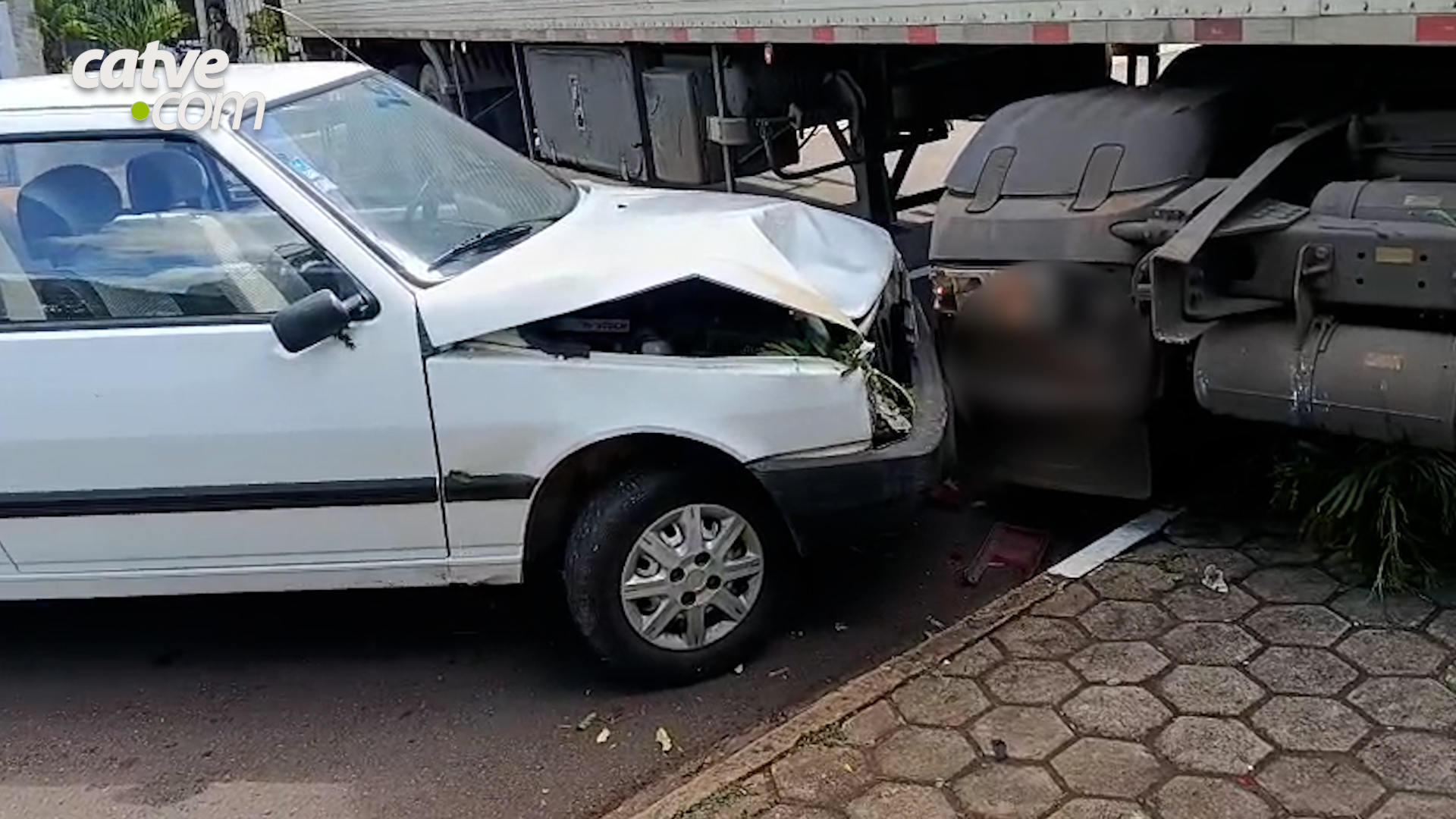 A equipe de reportagem do Catve.com teve acesso ao vídeo da câmera de monitoramento, que mostra o momento que uma carreta atingiu dois carros, na tarde desta terça-feira (18), em Toledo.