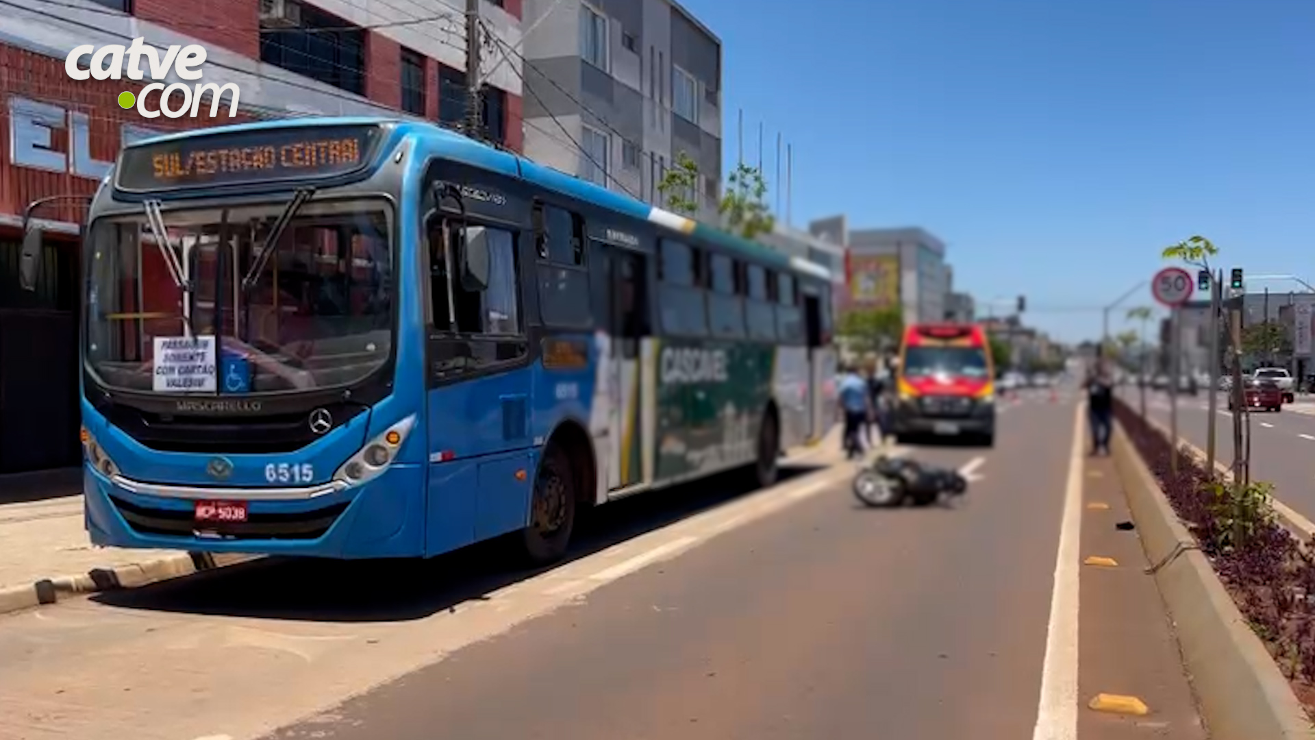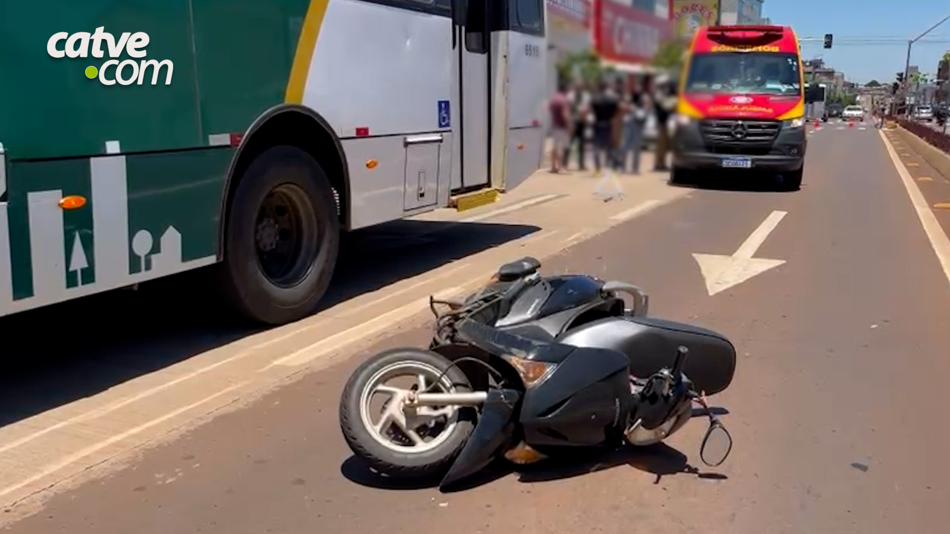 Acidente foi registrado na Avenida Carlos Gomes, na esquina com a Rua Sérgio Djalma de Holanda, em Cascavel, na tarde desta sexta-feira (21).