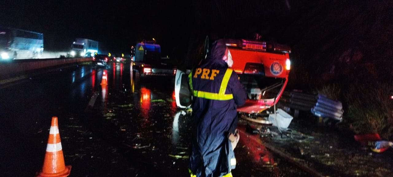 Viatura oficial do Corpo de Bombeiros capotou no quilômetro 431 na BR-376, em Tibagi, na noite de domingo (23).