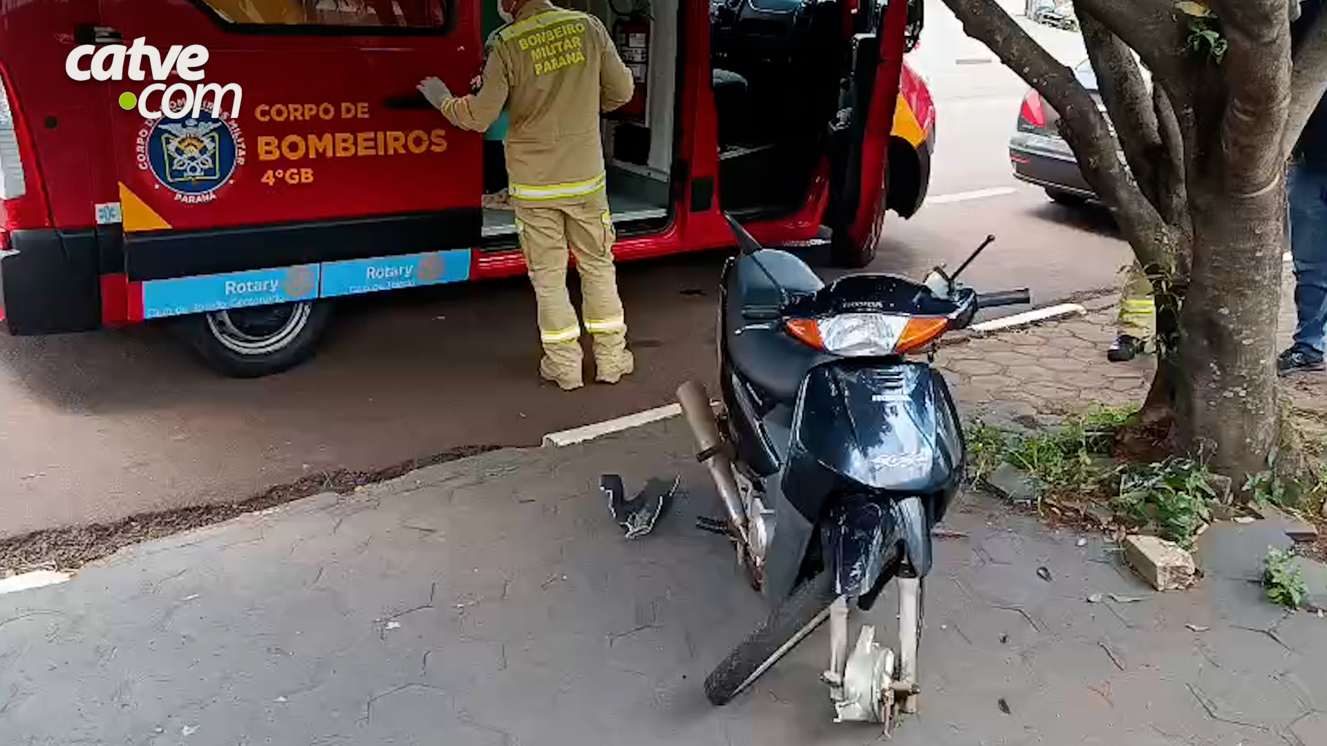 Acidente de trânsito entre carro e motocicleta foi registrado por volta das 13h desta segunda-feira (24), na Rua Piratini, região central de Toledo.