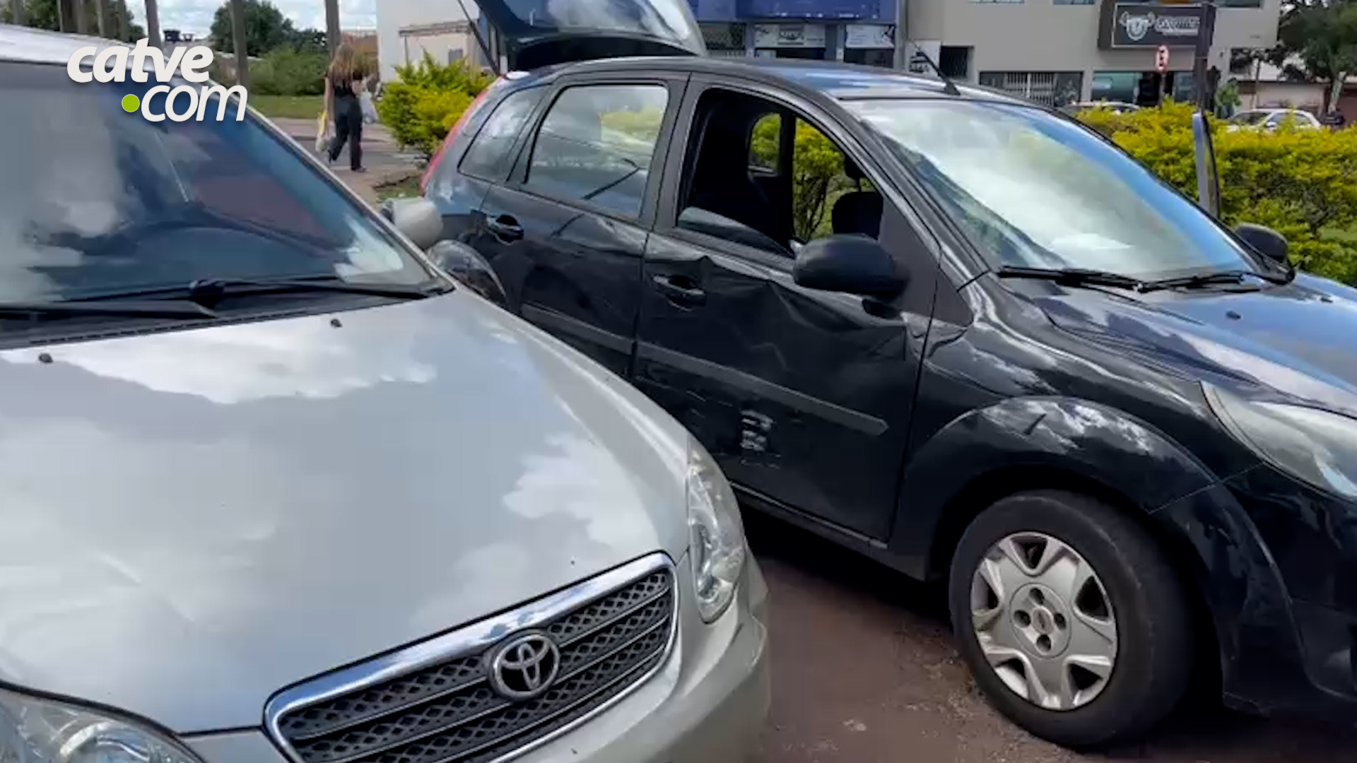 Toyota Corolla e Ford Fiesta bateram na tarde de segunda-feira (24), no bairro Universitário, em Cascavel.
