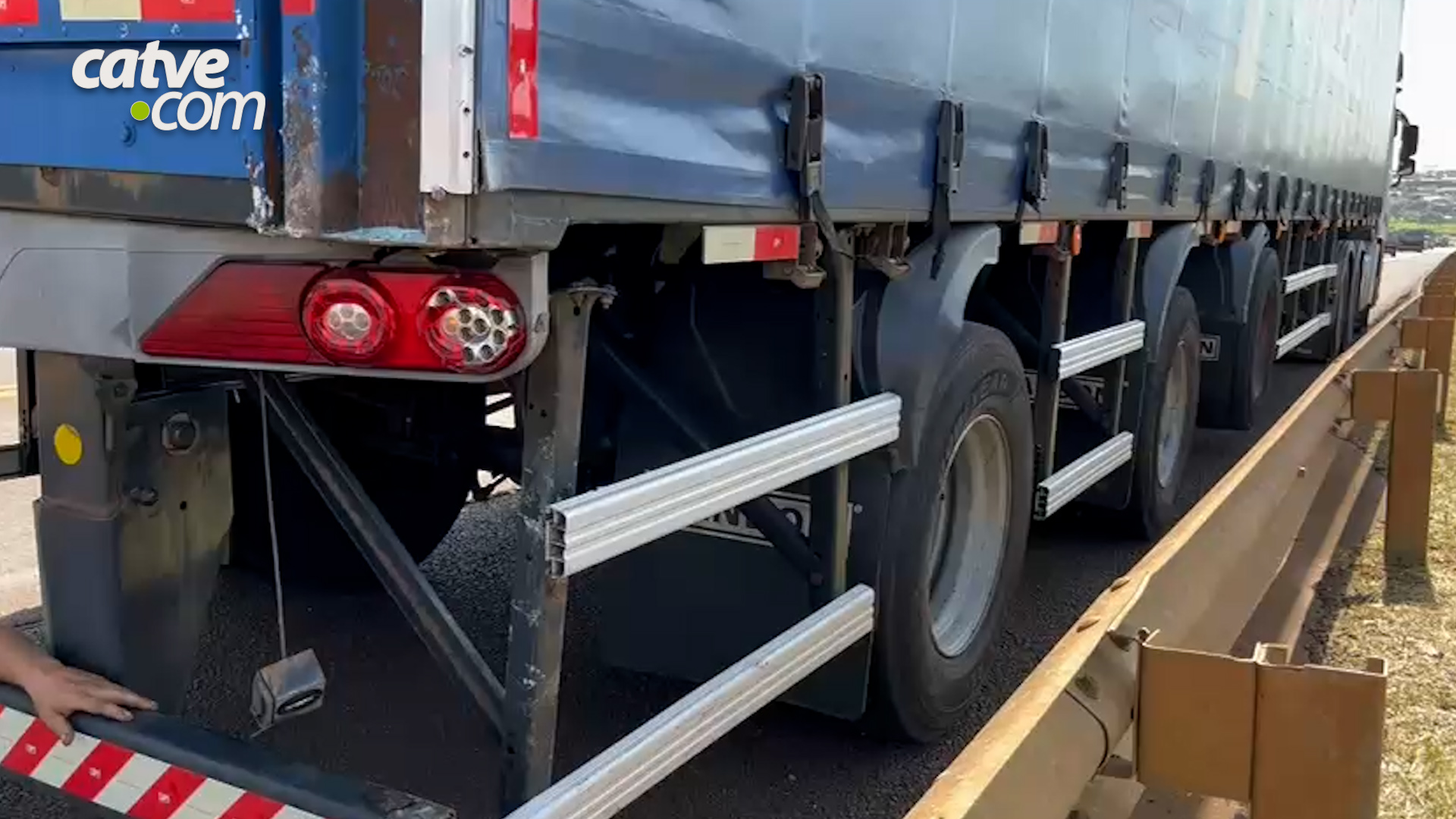 Somente os condutores estavam nos veículos, a van e o caminhão ficaram no acostamento da via e não atrapalham o trânsito.