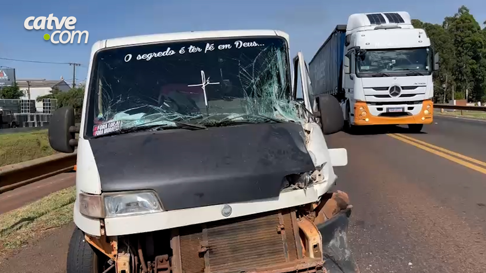 Uma Van bateu na traseira de um caminhão na manhã desta sexta-feira (28), na BR-277 em Cascavel, os dois seguiam no sentido Curitiba.