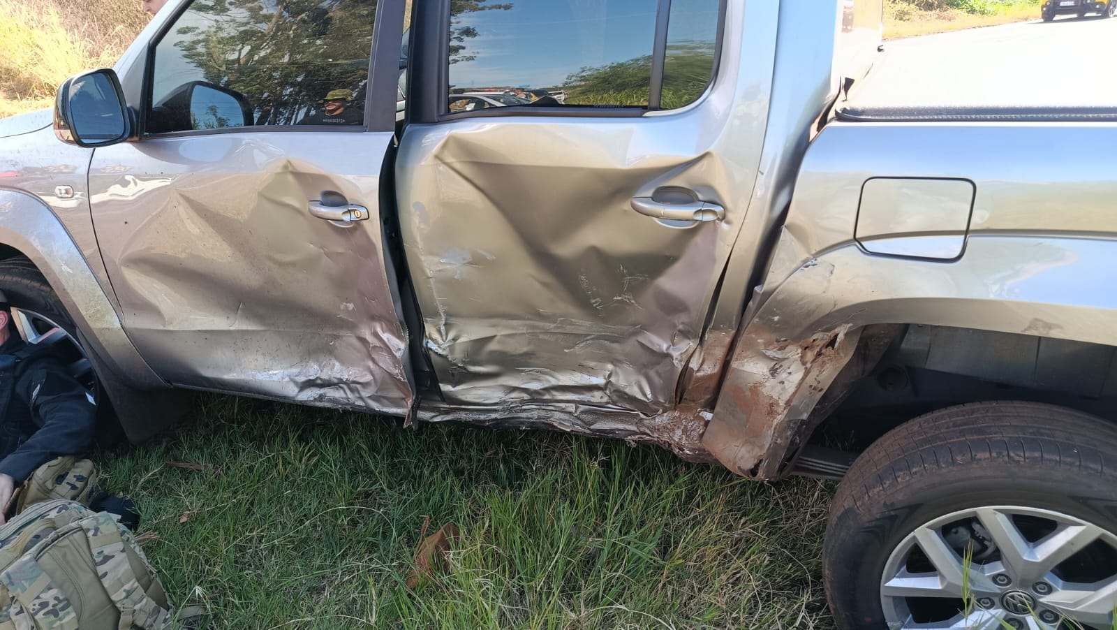 Segundo informações colhidas no local, ambos os veículos seguiam no mesmo sentido quando o motorista da Amarok tentou realizar uma conversão à esquerda. No momento da manobra, o Palio atingiu a caminhonete na lateral esquerda. Com o impacto, os dois veículos saíram da pista e pararam no acostamento.