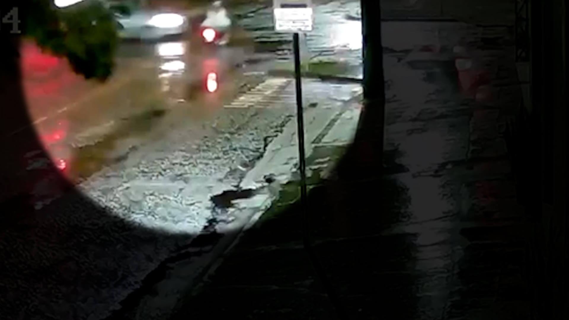 Câmera de segurança flagrou acidente entre carro e moto na região central de Cascavel, no Oeste do Paraná, durante a madrugada desta segunda-feira (1º).