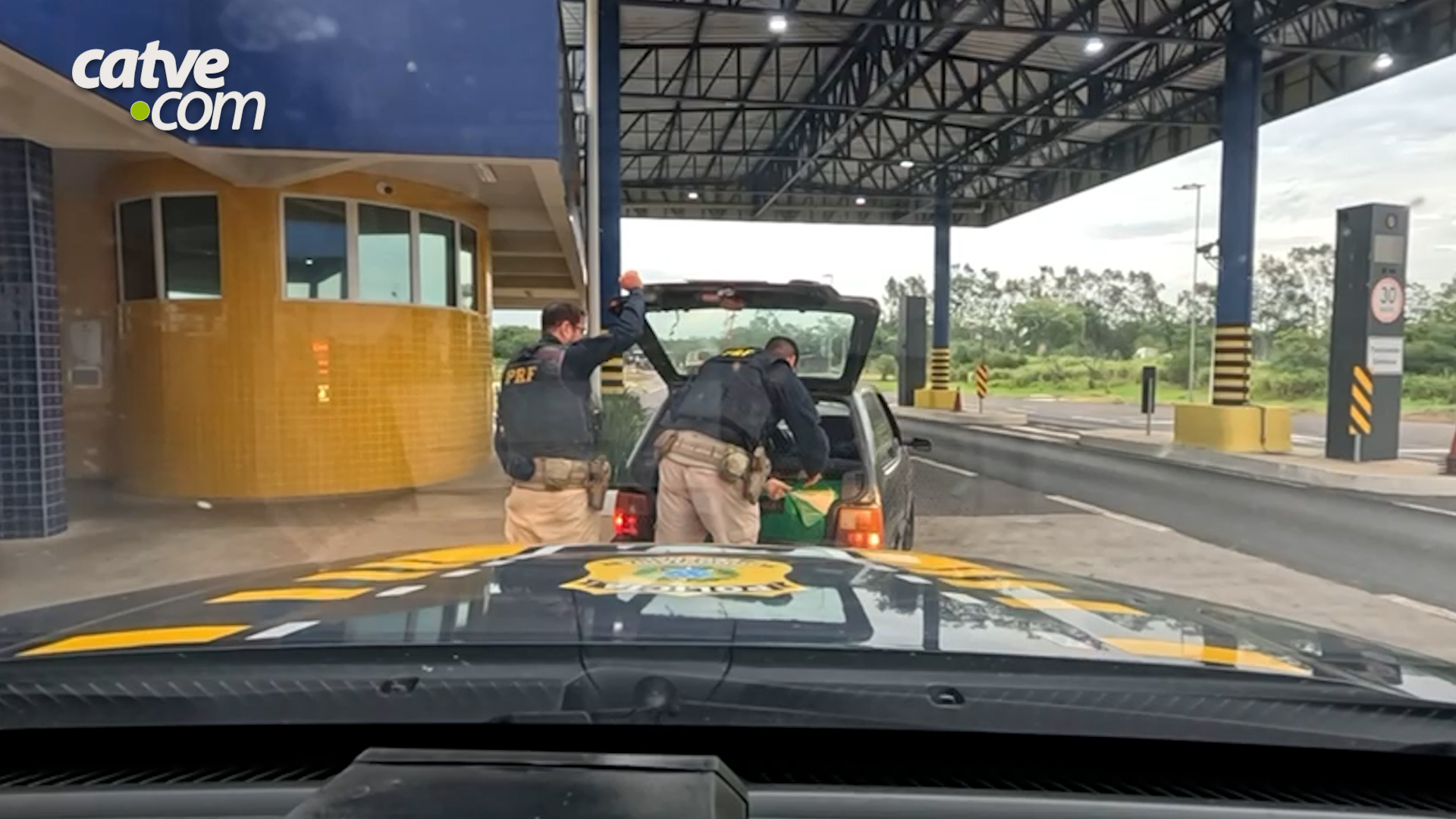 PRF encontrou droga no porta-malas e no assoalho de um Fiat Uno durante fiscalização de rotina