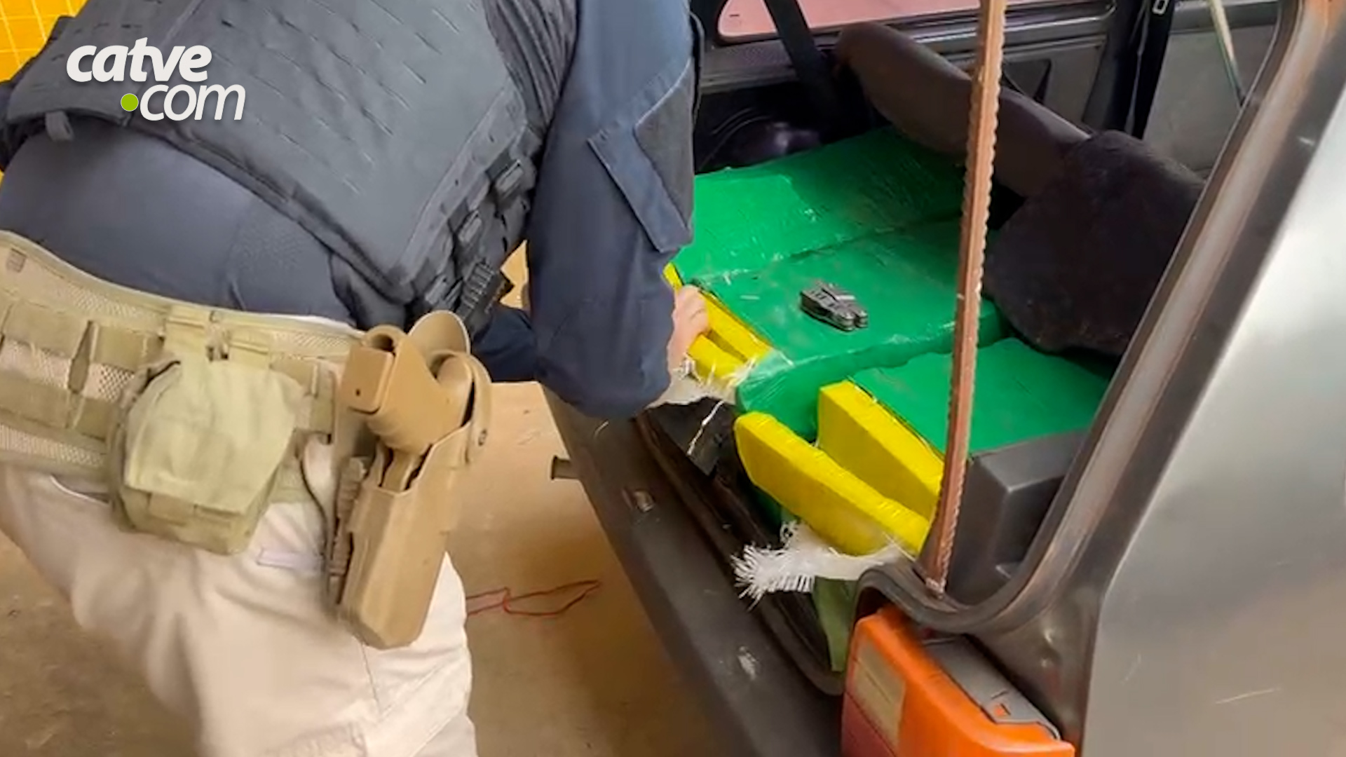 Durante a vistoria, os policiais localizaram vários fardos de maconha que ocupavam todo o porta-malas e o assoalho do veículo. O jovem informou que pegou o carro carregado em Sete Quedas, no Mato Grosso do Sul, e seguiria até Maringá, no Paraná.