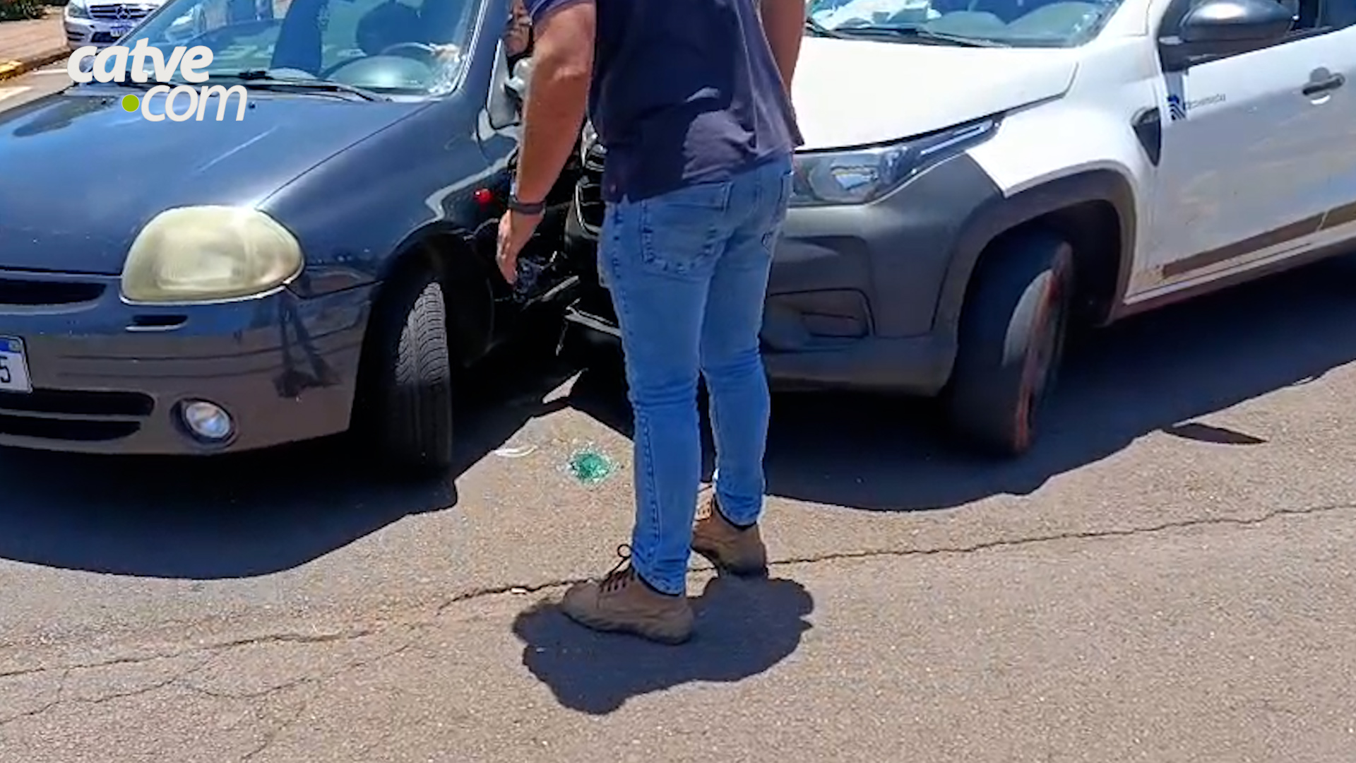 De acordo com informações apuradas no local, a picape seguia pela Rua Saturno quando o Clio, conduzido por uma mulher, deixou o acostamento para acessar a via. No momento da manobra, os veículos acabaram se envolvendo na batida.