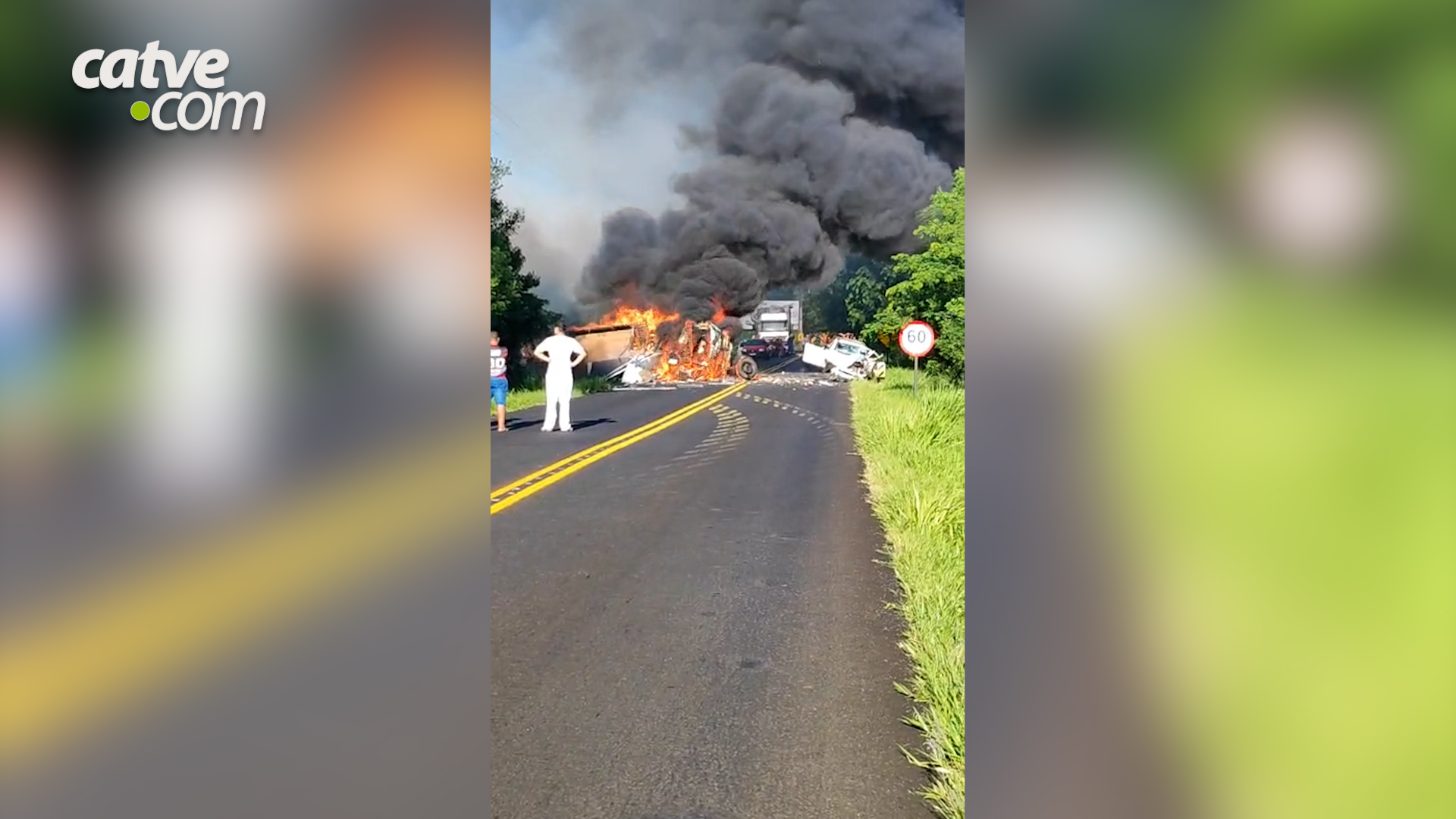 A batida envolveu um caminhão de pequeno porte, uma camionete Fiat Toro e um automóvel Fiat Pálio. O caminhão tombou e pegou fogo após a batida o passageiro, homem de 45 anos, morreu carbonizado. O motorista conseguiu escapar cortando o cinto de segurança com um canivete.