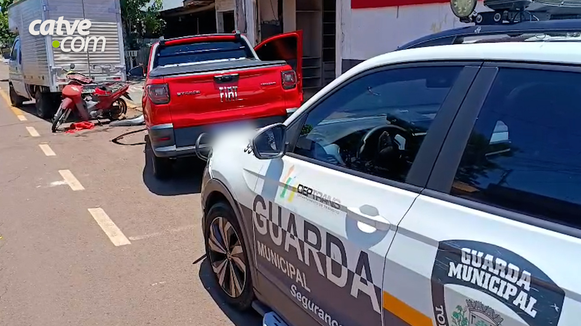 Acidente entre uma picape e uma motocicleta deixou um homem de 33 anos ferido no final da manhã desta sexta-feira (05), no cruzamento da Rua Maria José Nogueira com a Avenida Roberto Fachini, no bairro Jardim Coopagro, em Toledo.