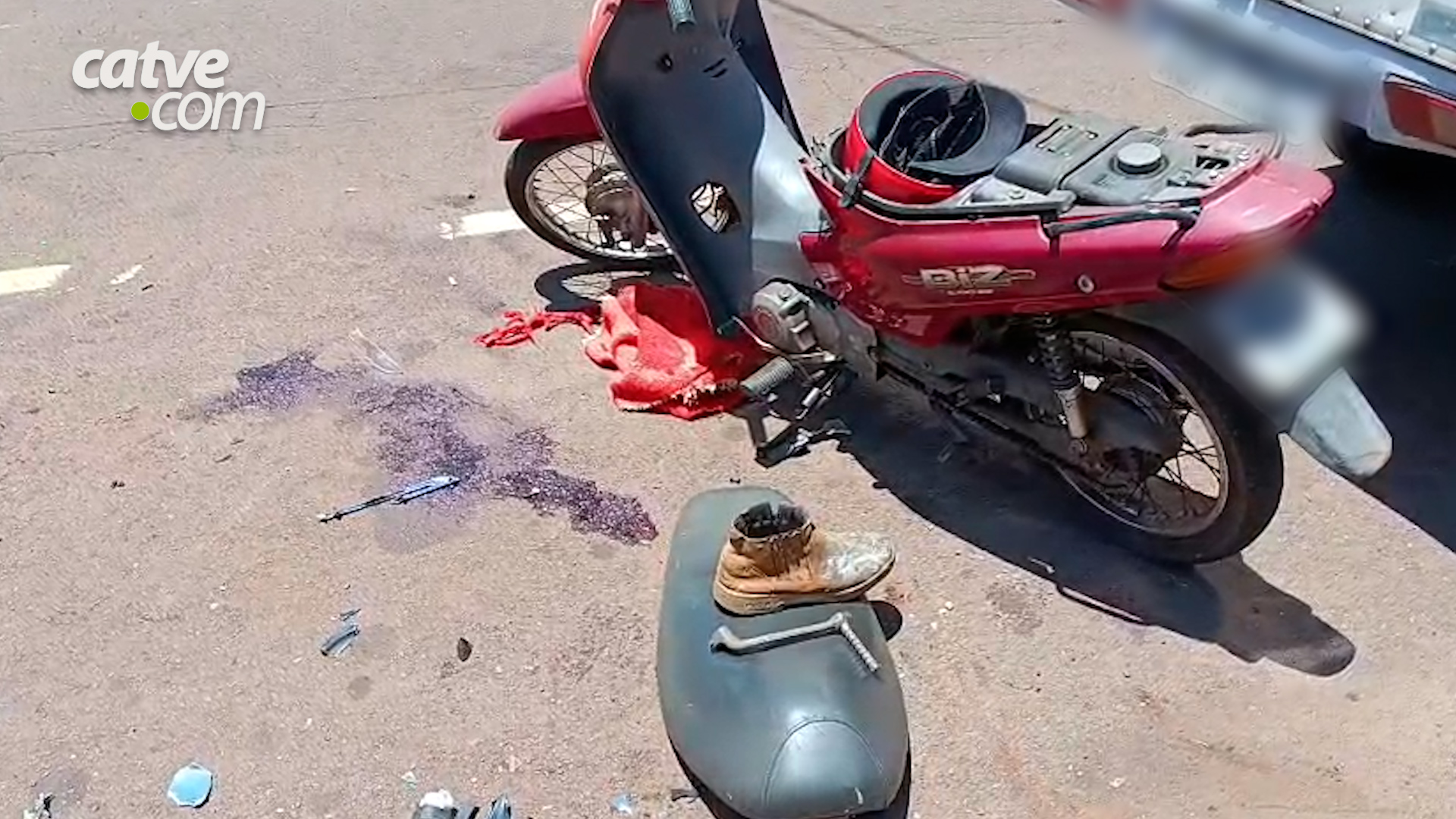 No vídeo é possível ouvir o som do impacto entre os veículos e ver o motociclista sendo arremessado para o alto antes de cair no asfalto. A força da batida quebrou o para-brisa da picape e causou uma fratura em uma das pernas do homem de 33 anos, que recebeu atendimento do SAMU e foi levado a um hospital.