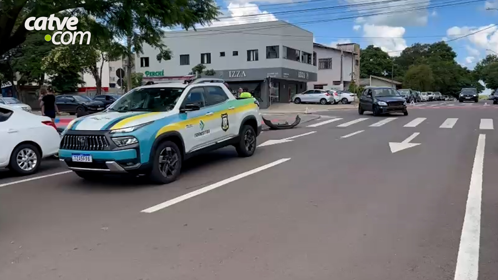 Dois carros bateram no Centro de Cascavel na tarde desta sexta-feira (5).