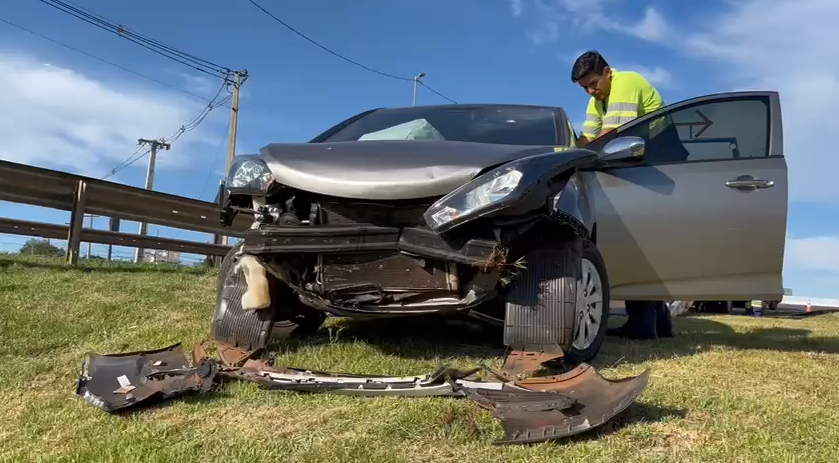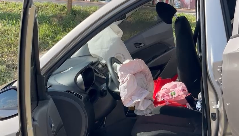 Somente a condutora teve ferimentos, um corte no queixo e foi atendida no local. Os airbags do carro foram acionados por conta da colisão.