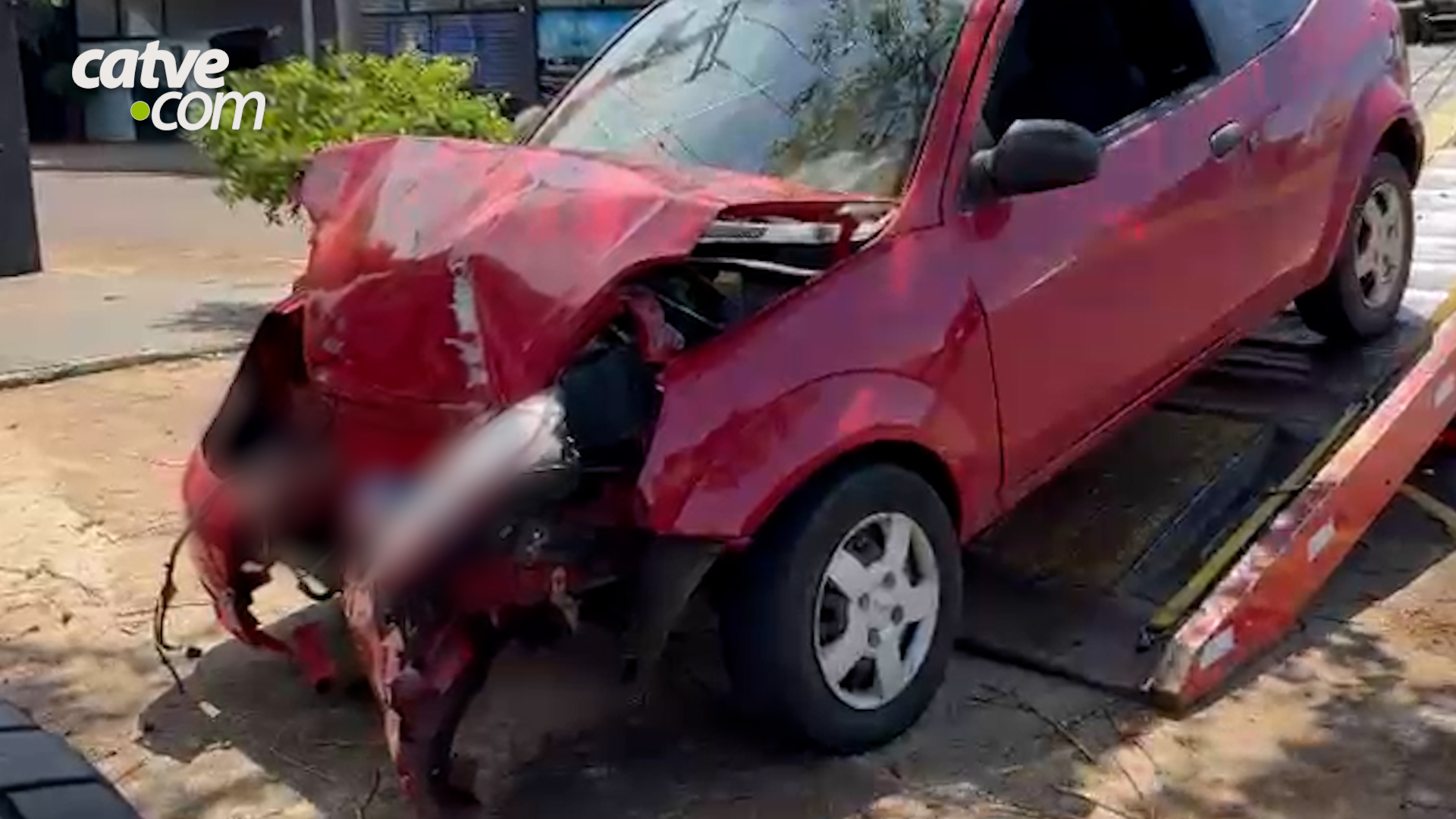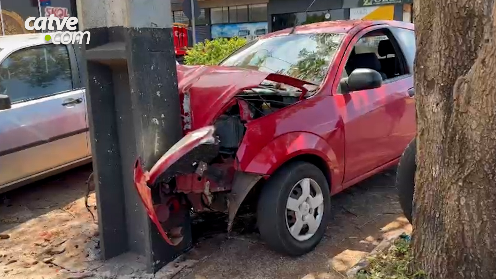 Motorista ficou ferido após bater Ford Ka contra poste na Avenida Maripá, em Toledo, na manhã deste domingo (7). Conforme as informações apuradas no local, o condutor perdeu o controle da direção e atingiu a estrutura.
