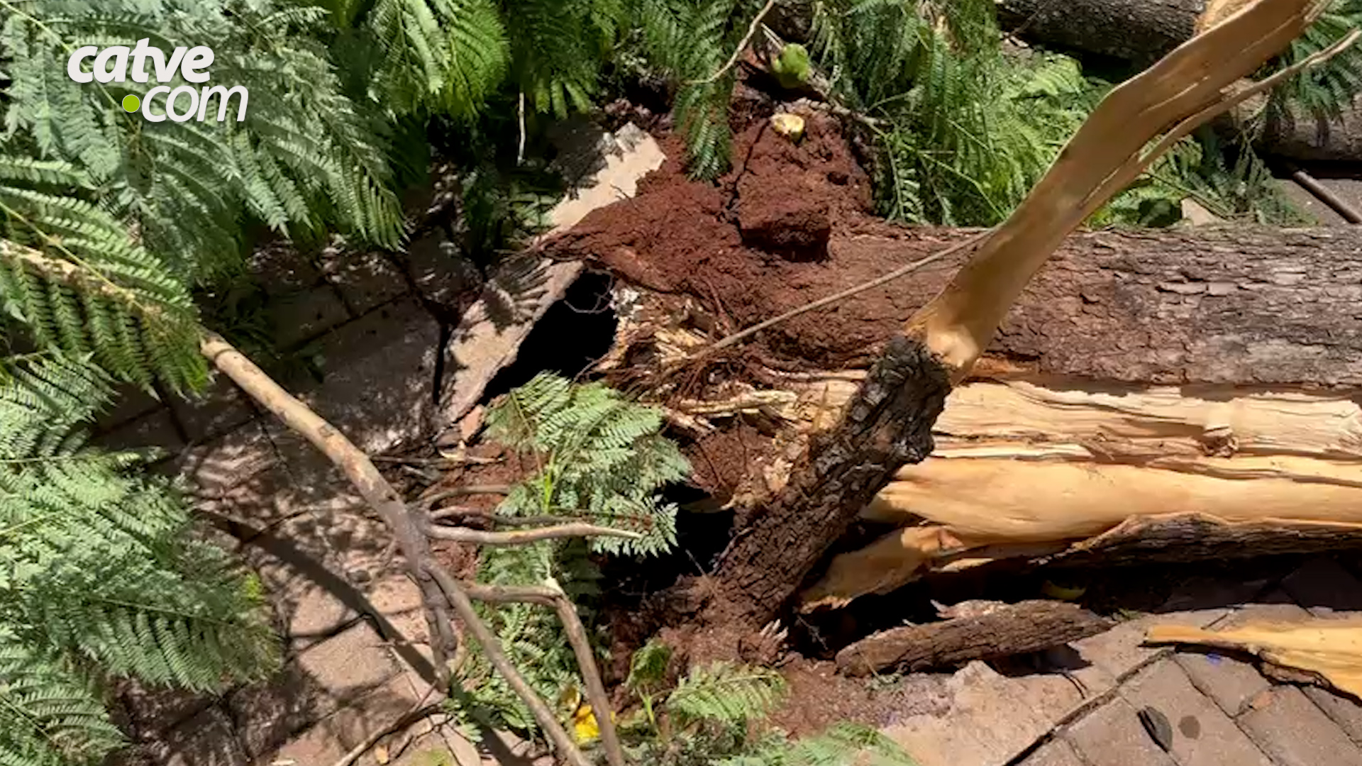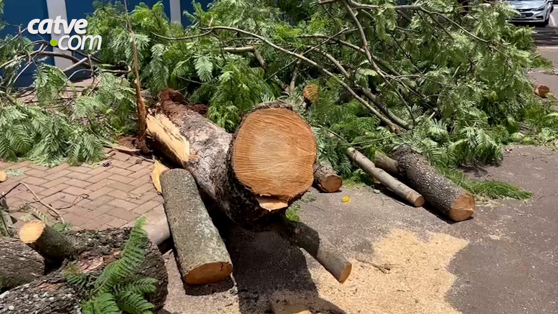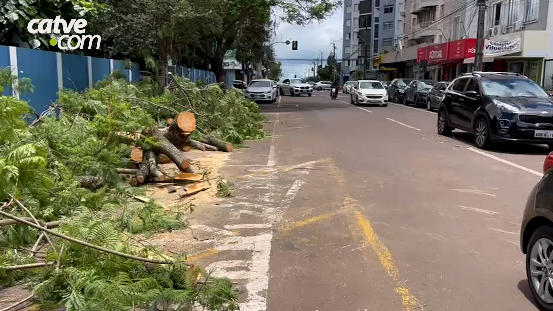 Imagens cedidas ao Portal Catve.com mostram a árvore que caiu na manhã desta quarta-feira (10), no cruzamento da Rua Carlos de Carvalho com a Rua Rio Grande do Sul, no Centro de Cascavel.